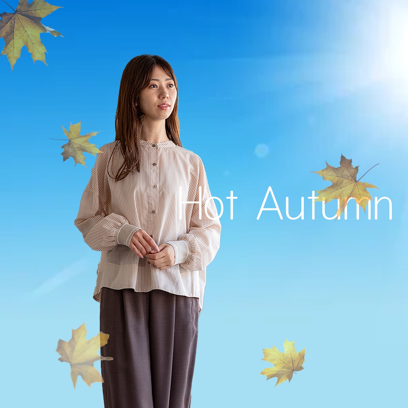日よけやクーラー避けにも使える、秋の羽織りアイテムなどでコーディネートしました。