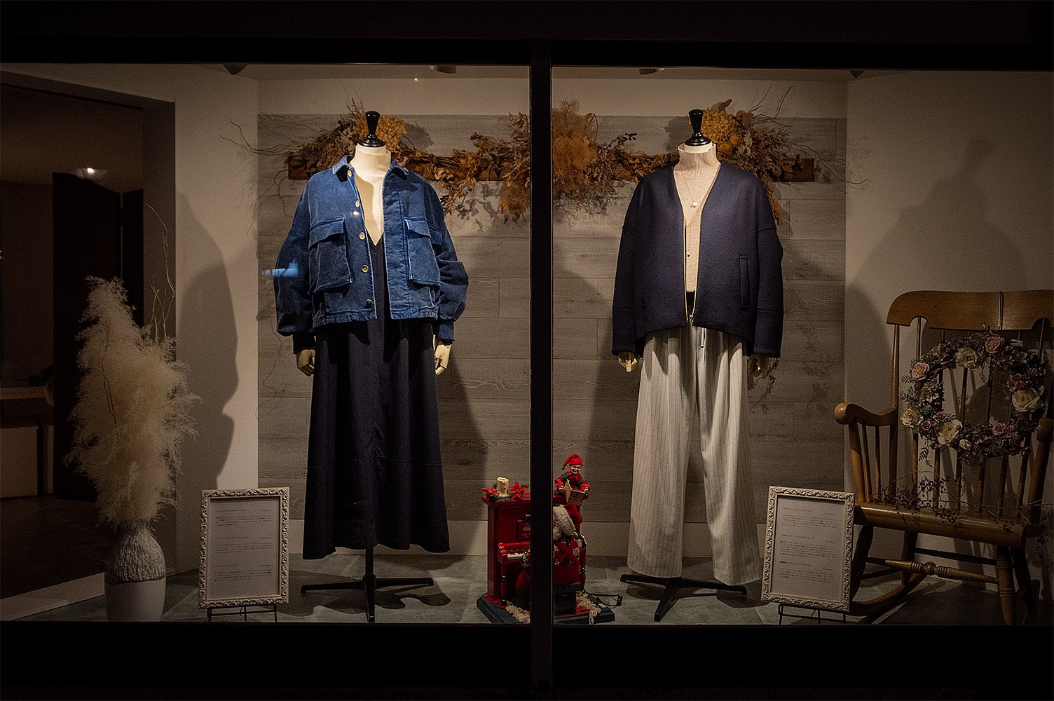 今の時期に合った商品でウィンドウのマネキン着替えました。