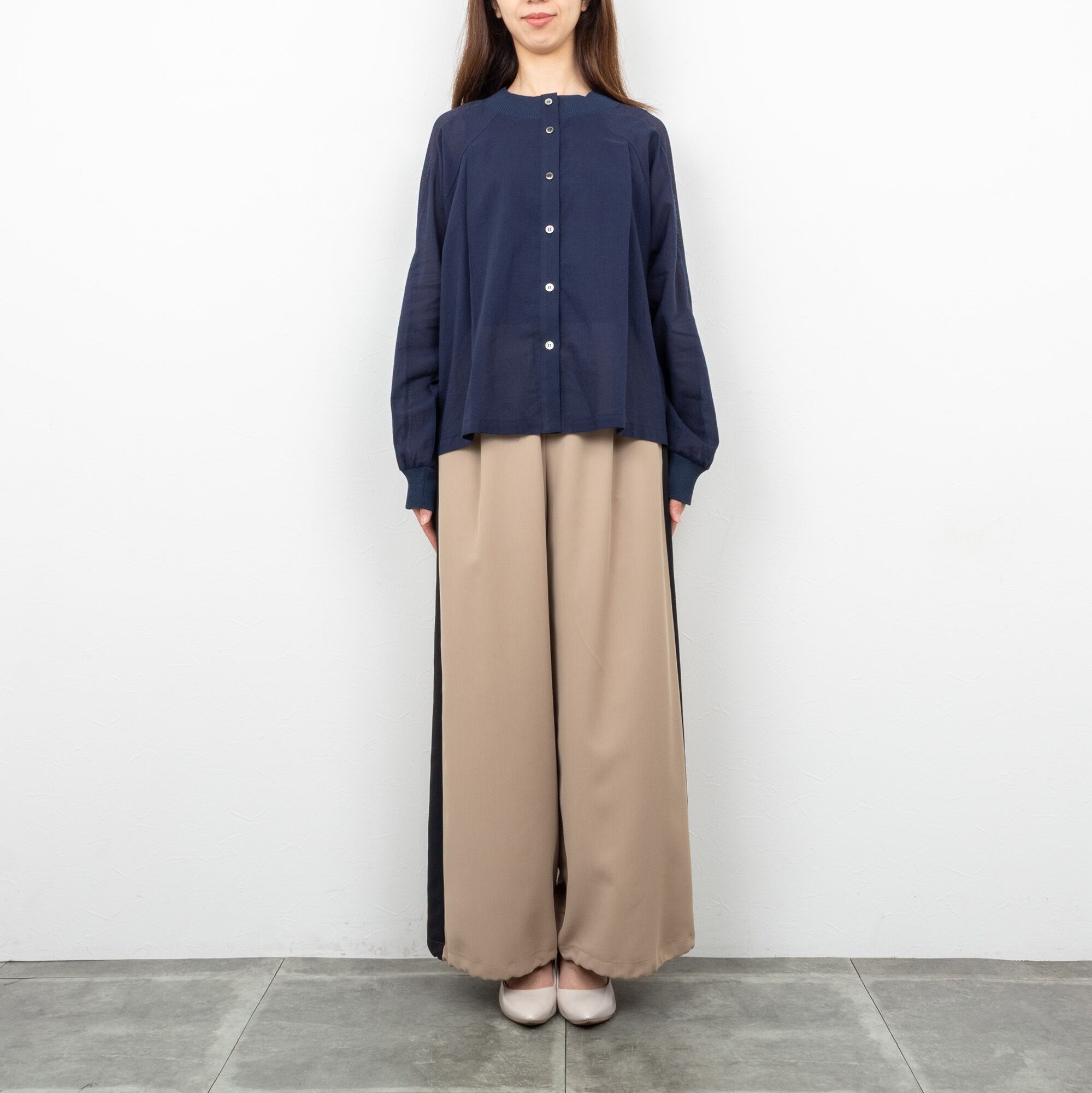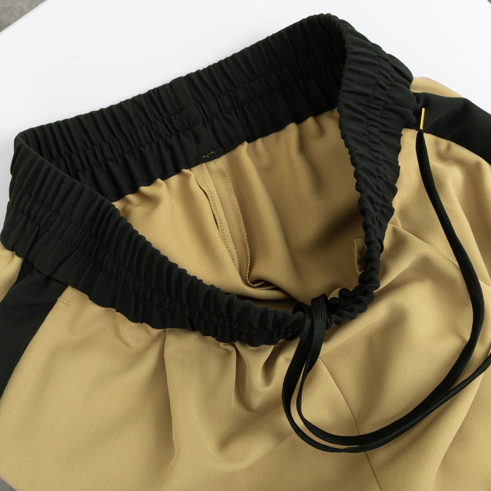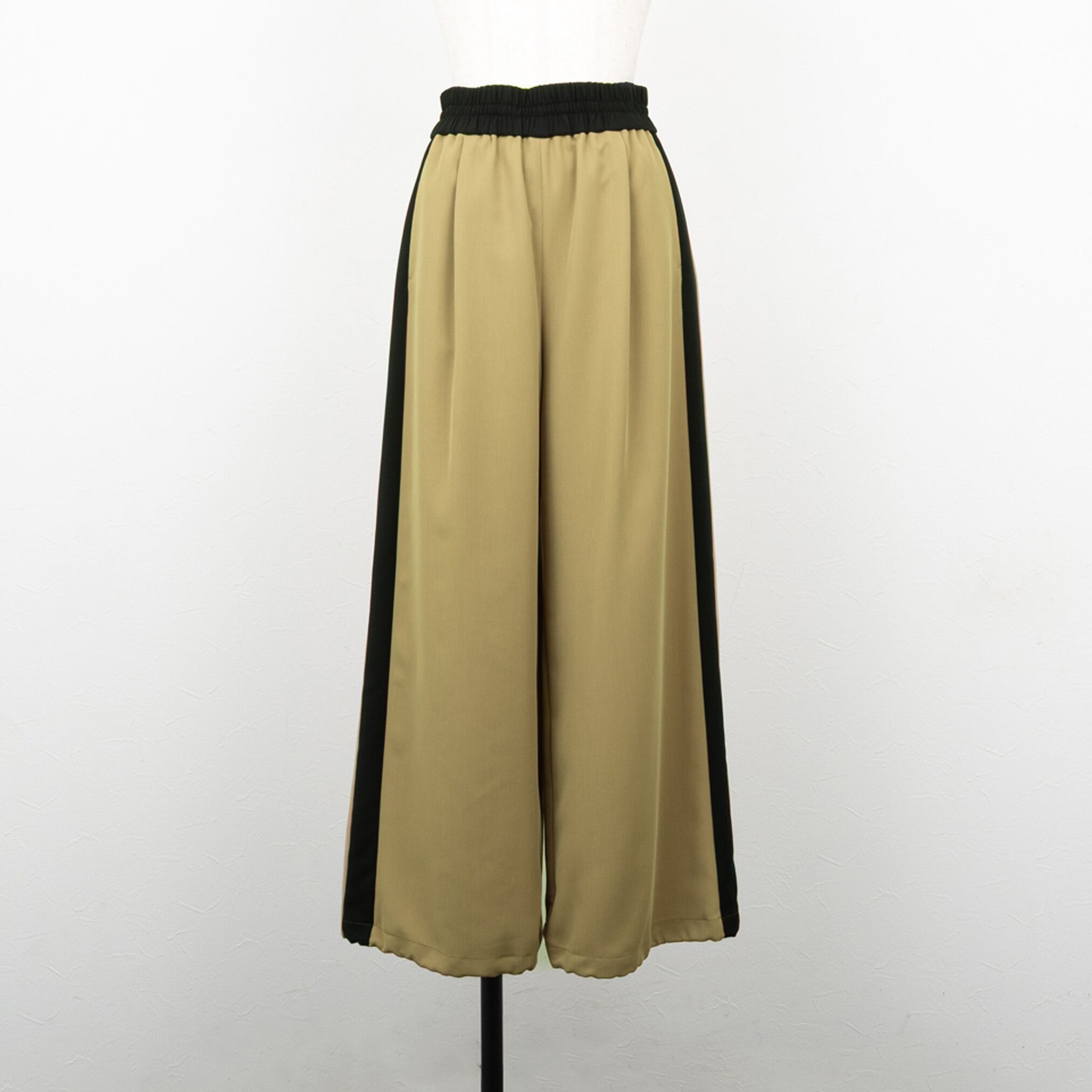 ウェストからサイドにかけてバイカラーのラインがポイントのワイドパンツ。