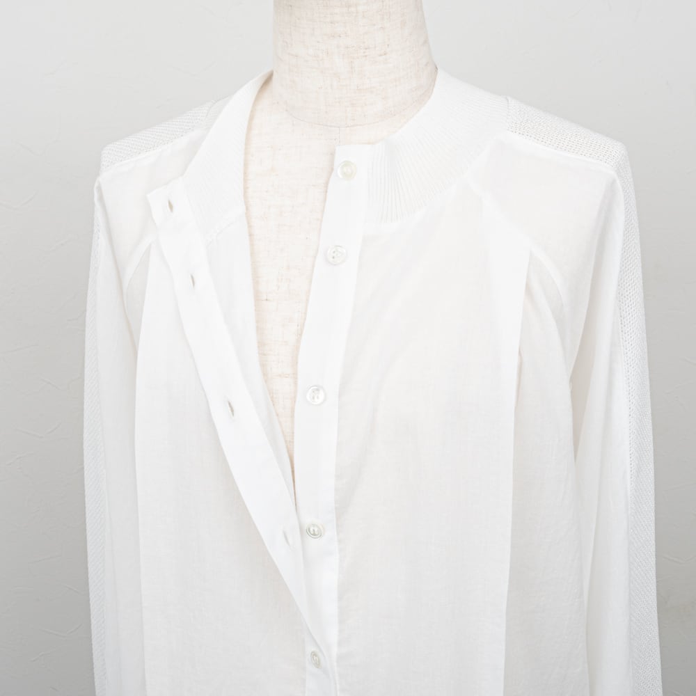 シアー感のあるシャツ地とメッシュ素材に、ニットリブが加わる事でカジュアルな雰囲気をプラスしています。