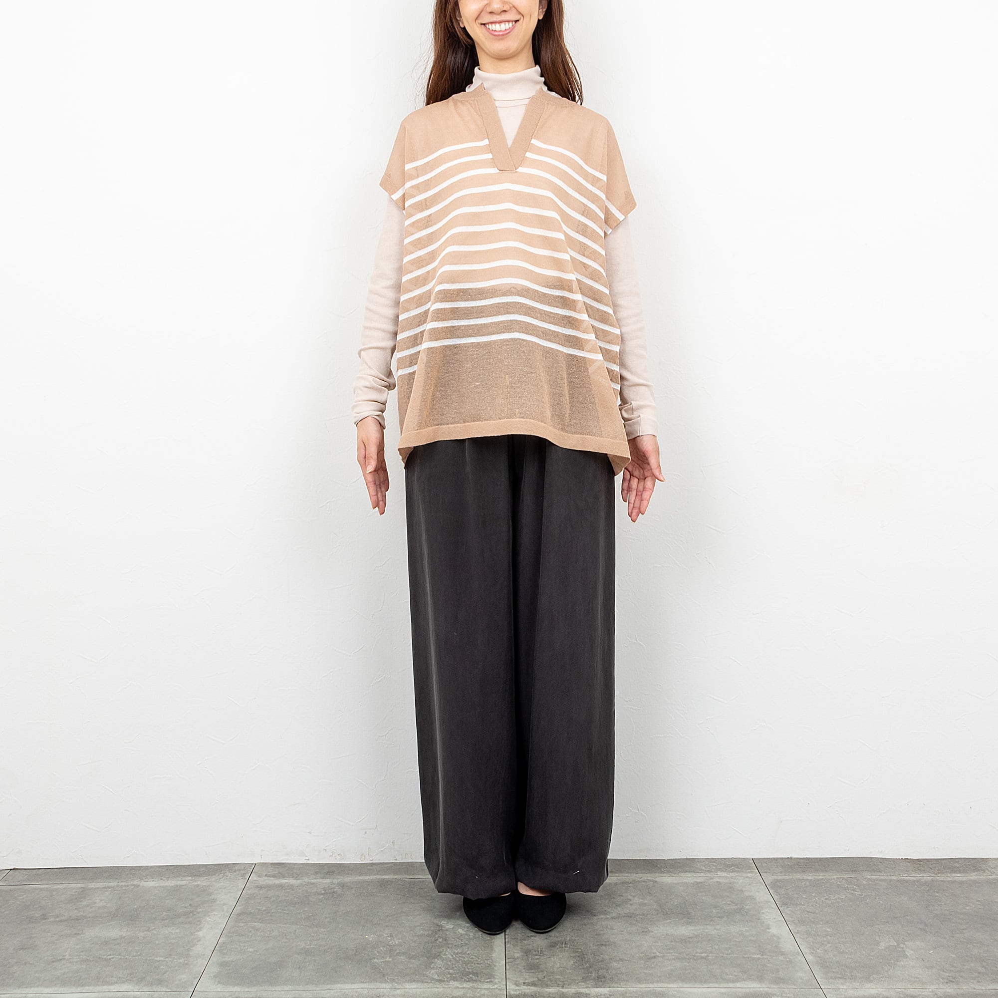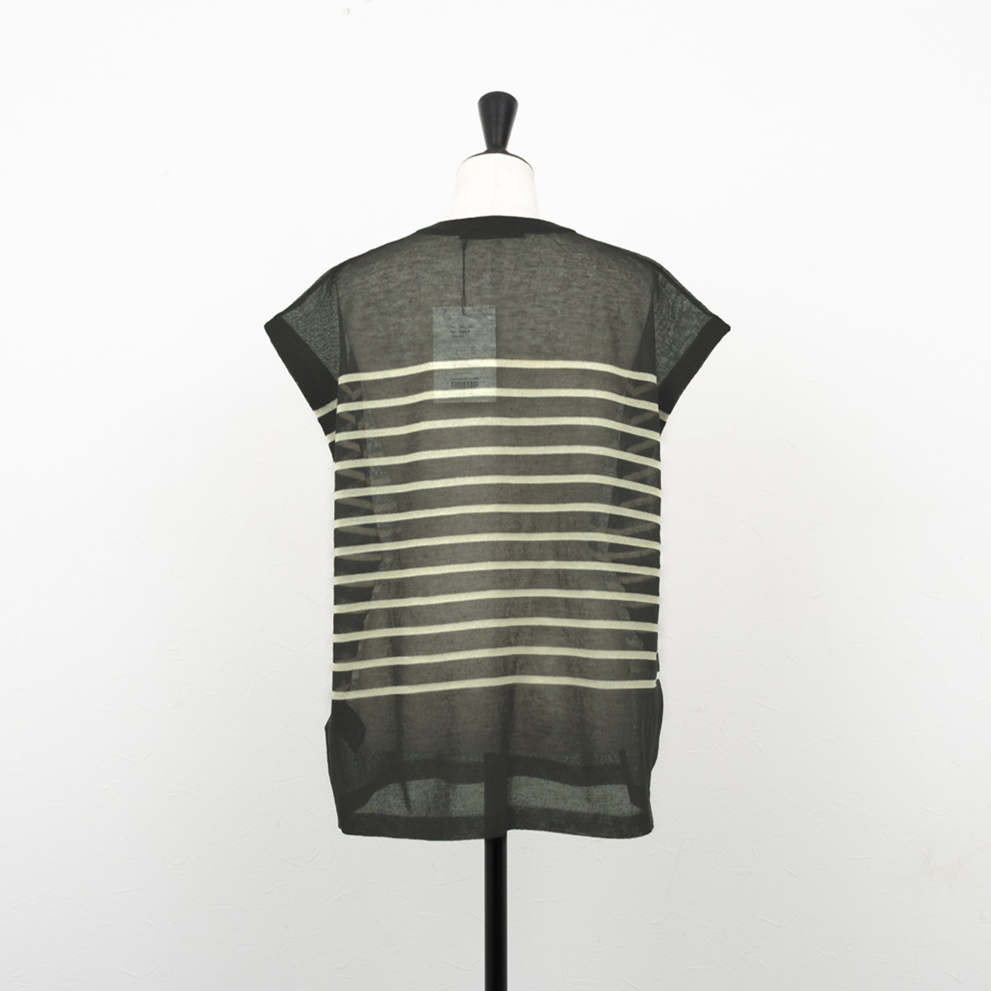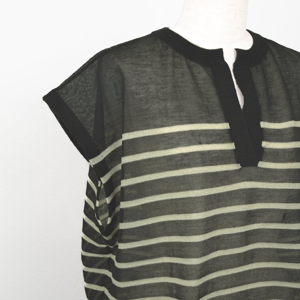 透け感のある繊細は編地でカジュアルになりがちなボーダートップスを軽やかに仕上げたニットトップス。