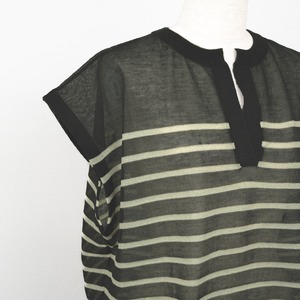シアー感のある暗いグレーにオフホワイトのボーダー