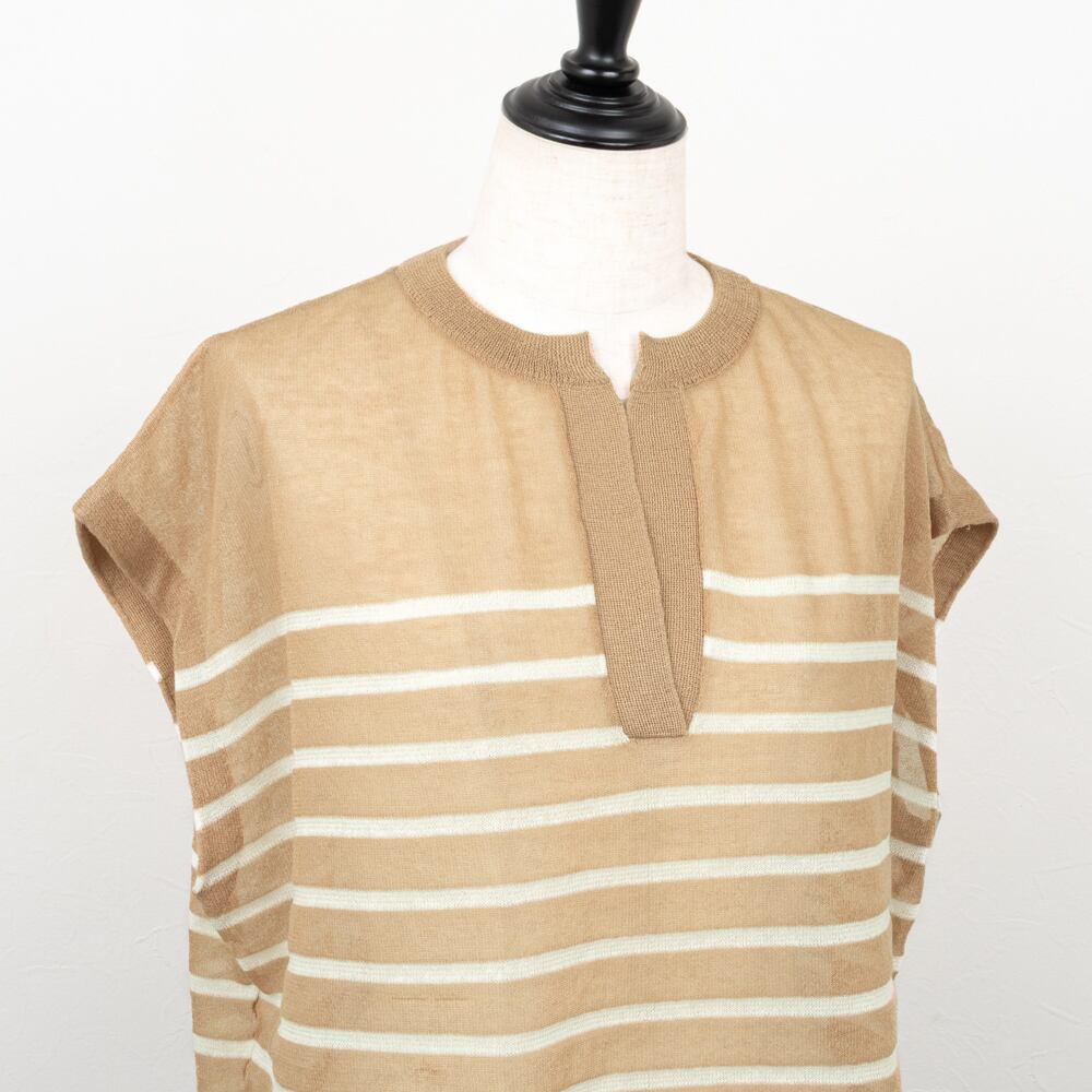透け感のある繊細は編地でカジュアルになりがちなボーダートップスを軽やかに仕上げたニットトップス。