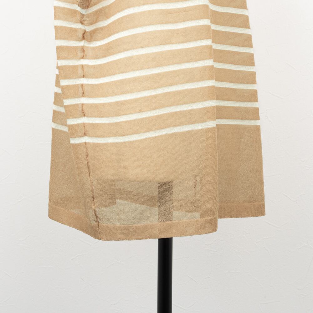 シアー感のあるくすんだ赤みのベージュにオフホワイトのボーダー