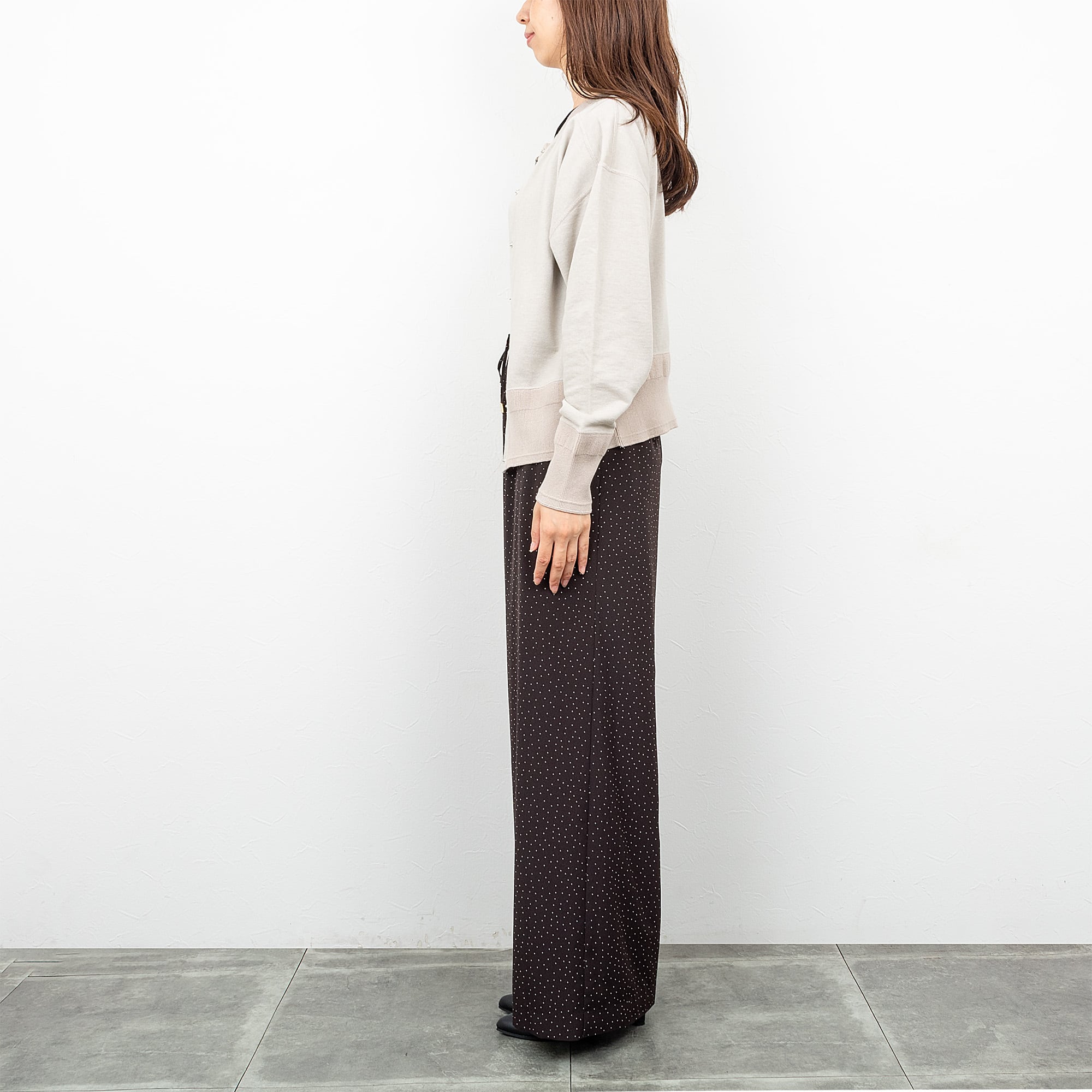 【EMMACULATE/エマキュレイト】ドットボタン前後2wayクルーネックカーディガン(グレージュ)