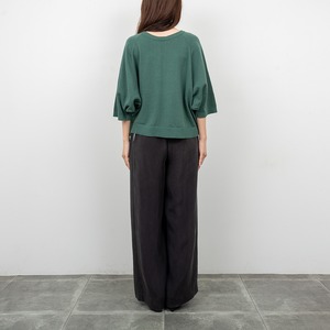 程良い開きのクルーネックに6分袖で暑さの残る初秋からお使いいただけます。