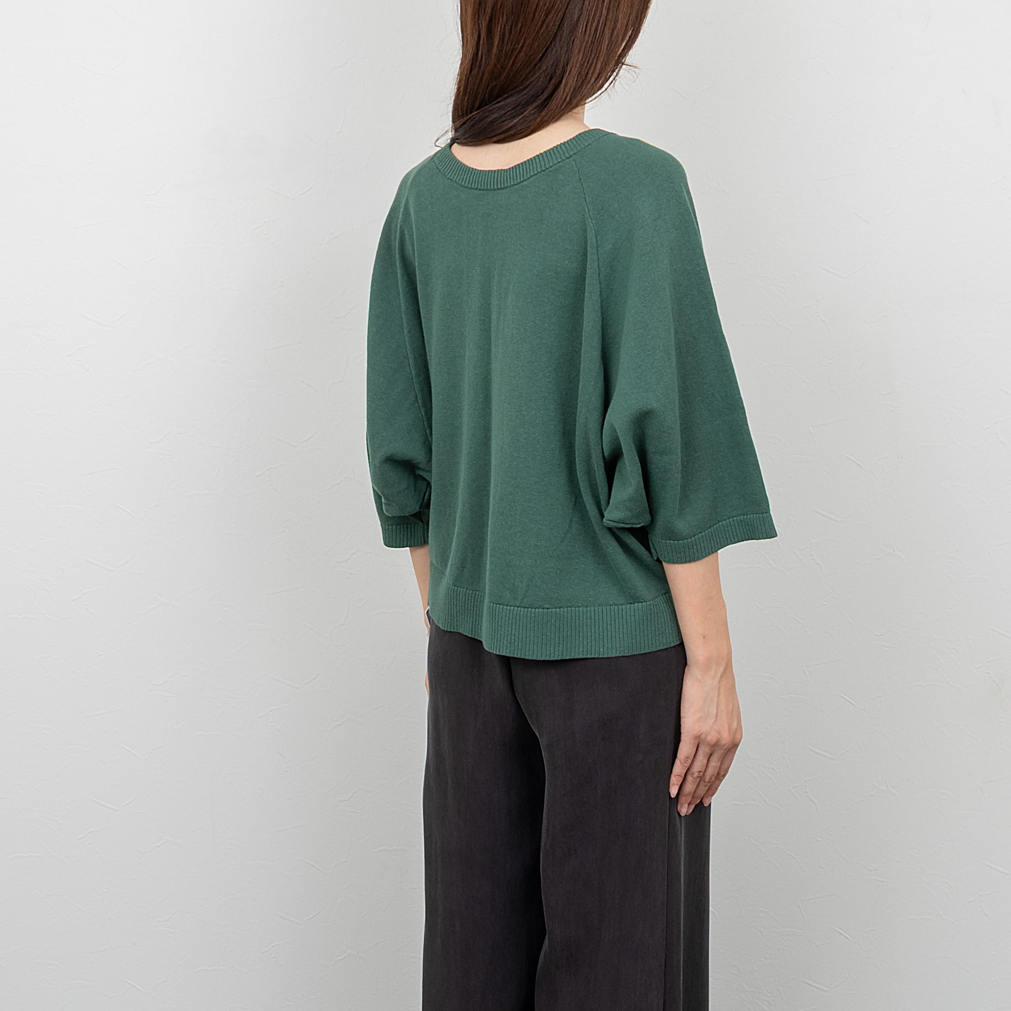 程良い開きのクルーネックに6分袖で暑さの残る初秋からお使いいただけます。