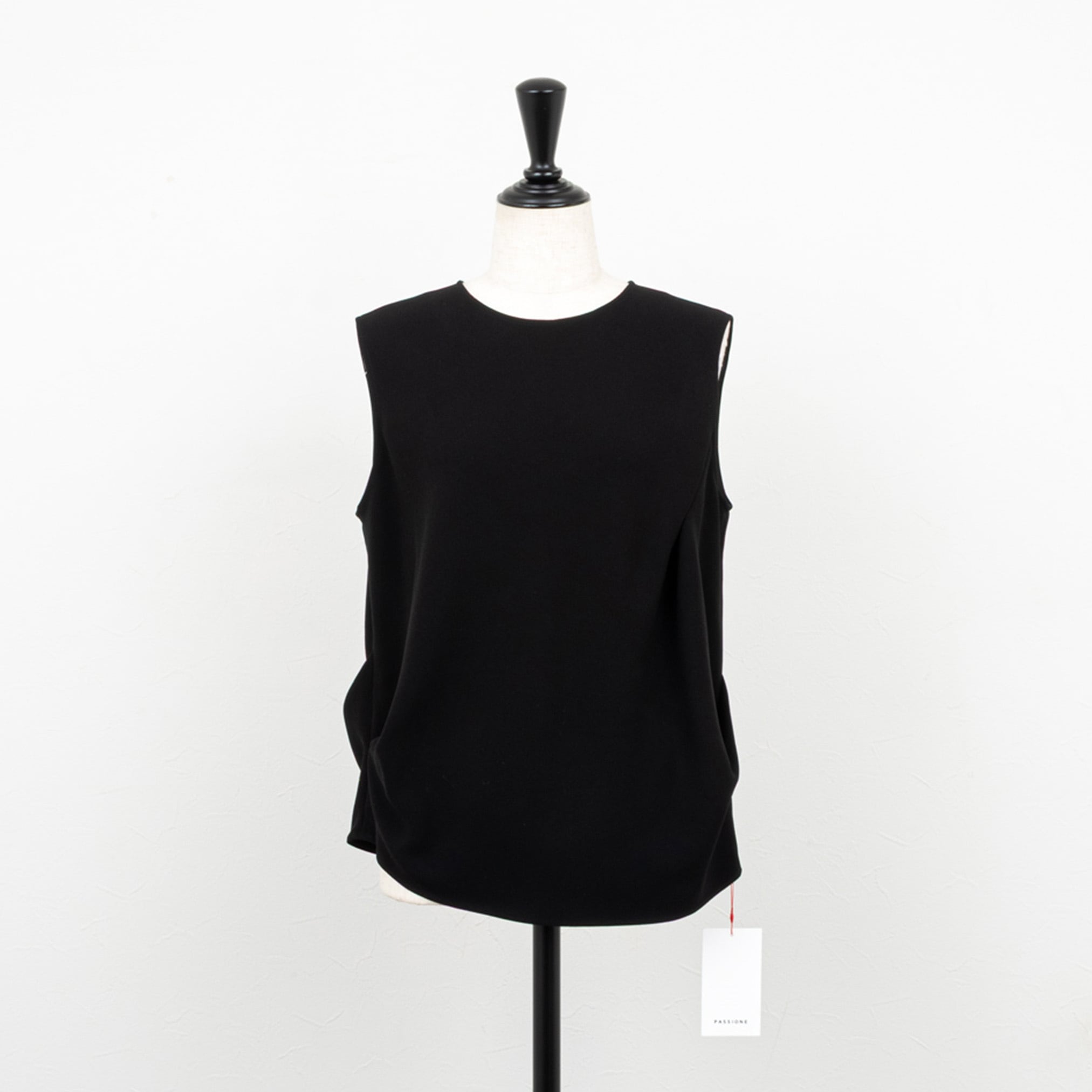 【PASSIONE/パシオーネ】アシメトリーノースリーブブラウス(ブラック)