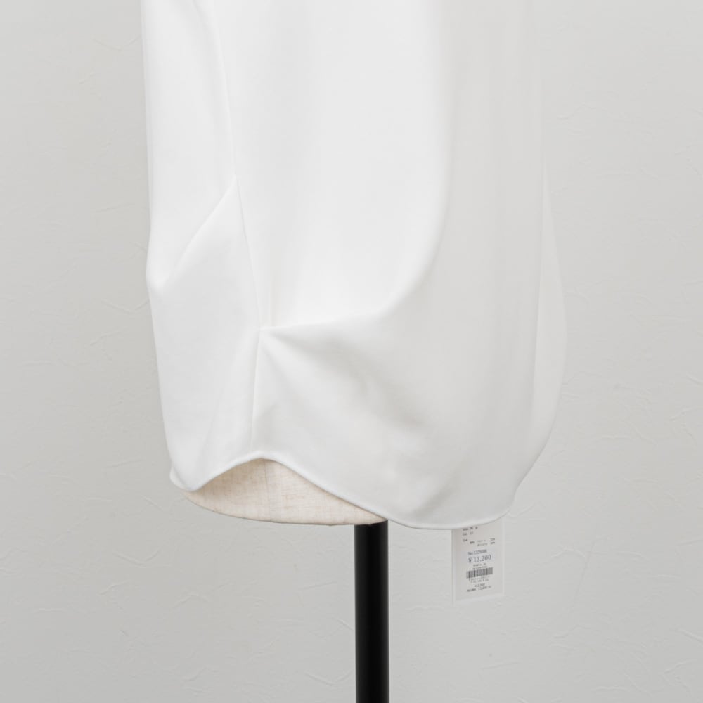 左右非対称にタックとダーツが施され、さり気なくアシメトリーなデザインです。