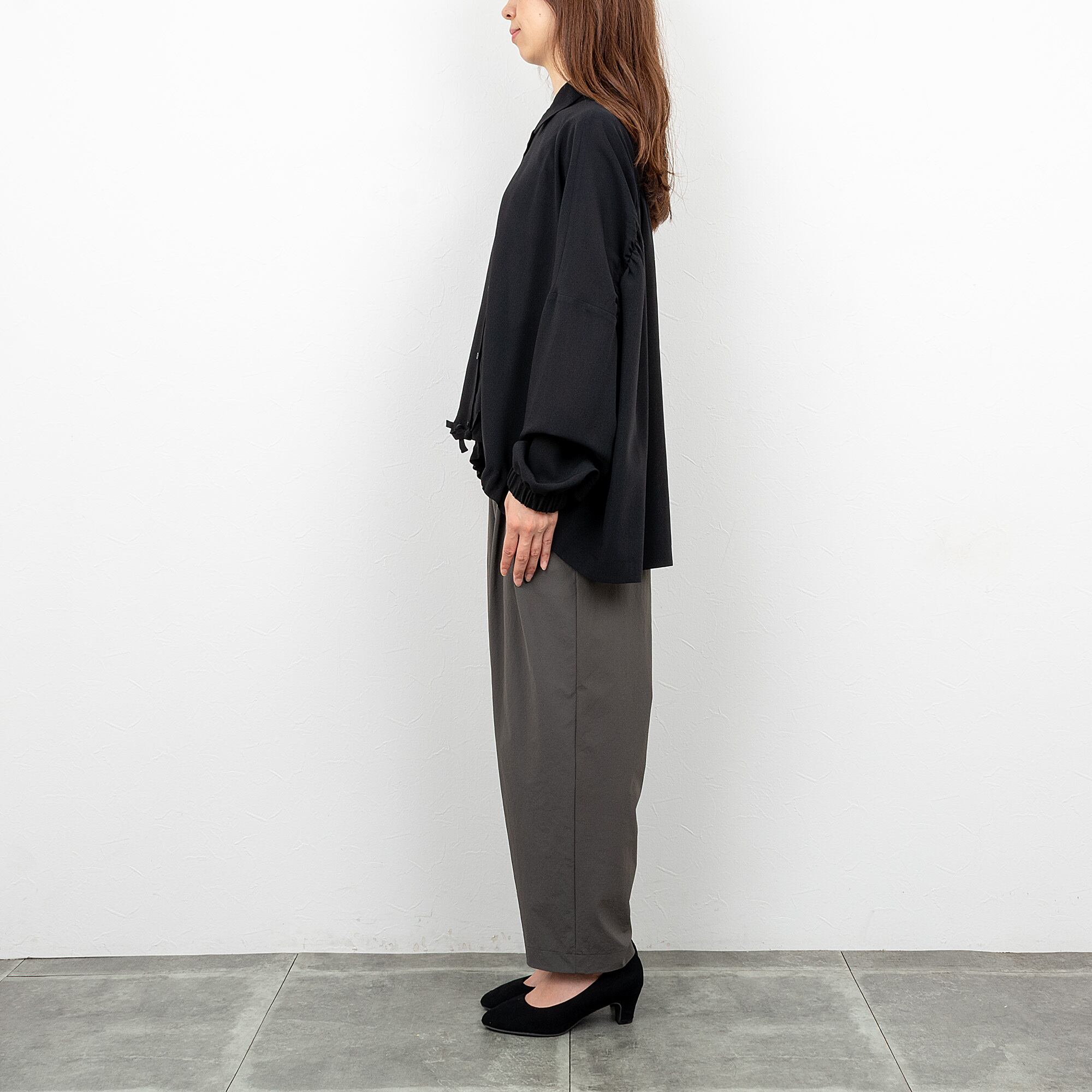 前裾のブラウジングデザインで、ワイドなボトムとも合わせていただけます。
