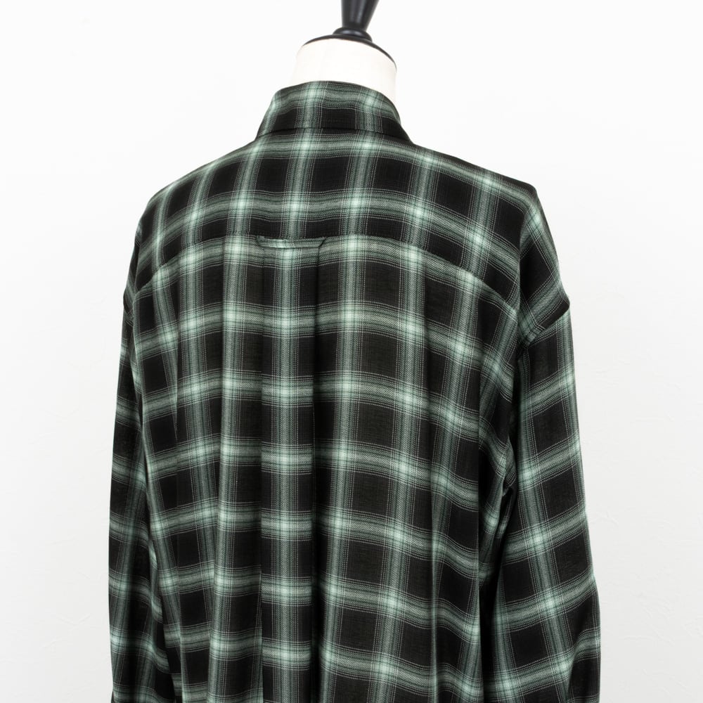 ヒップまで隠れるバックロングで、やや丈長めのベーシックなチェックシャツ。