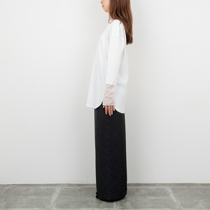 タックインしたりタックアウトしたり、様々なボトムと合わせていただけます。