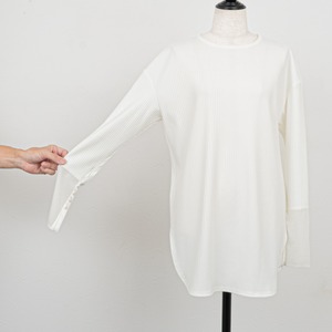【PASSIONE/パシオーネ】シアーカフワイドリブロングTシャツ(ホワイト)