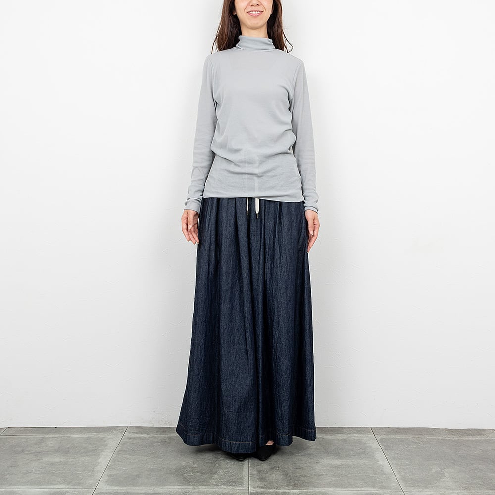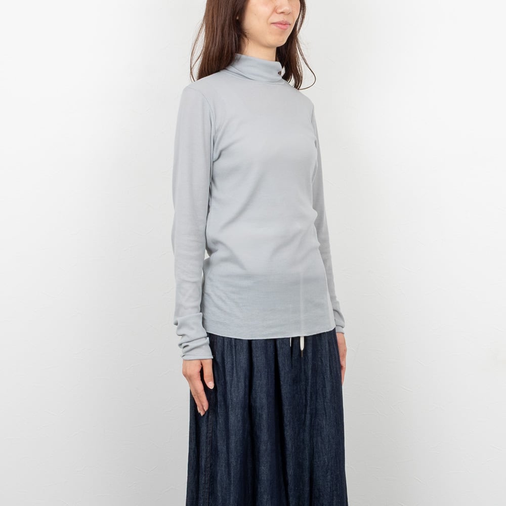 少しゆとりがありながらもネックの形をキープしてくれるデザインで、タートルネックが苦手な方にも手に取りやすい一枚です。