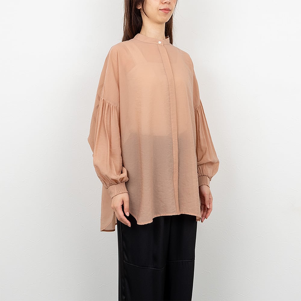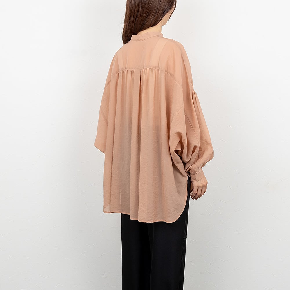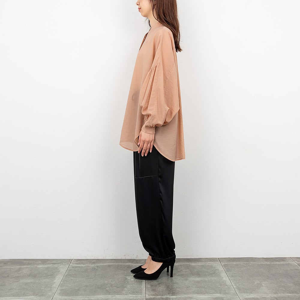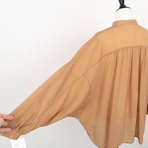 比翼仕立てでスッキリした印象に、リラックスして着られるドルマンスリーブのブラウス。