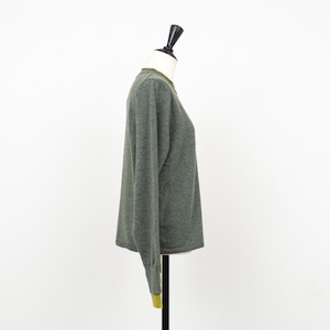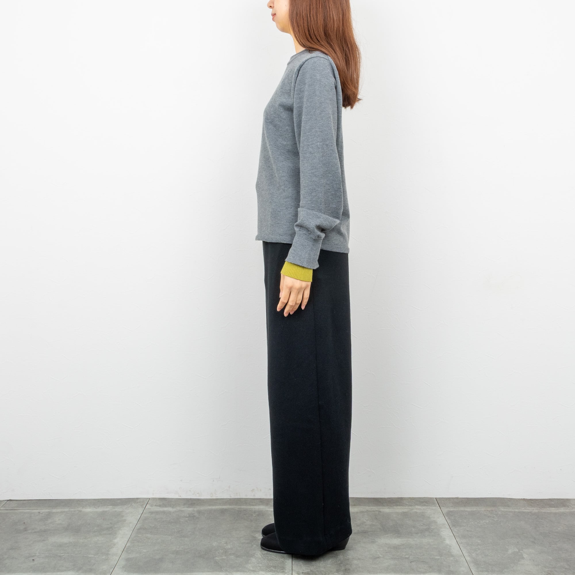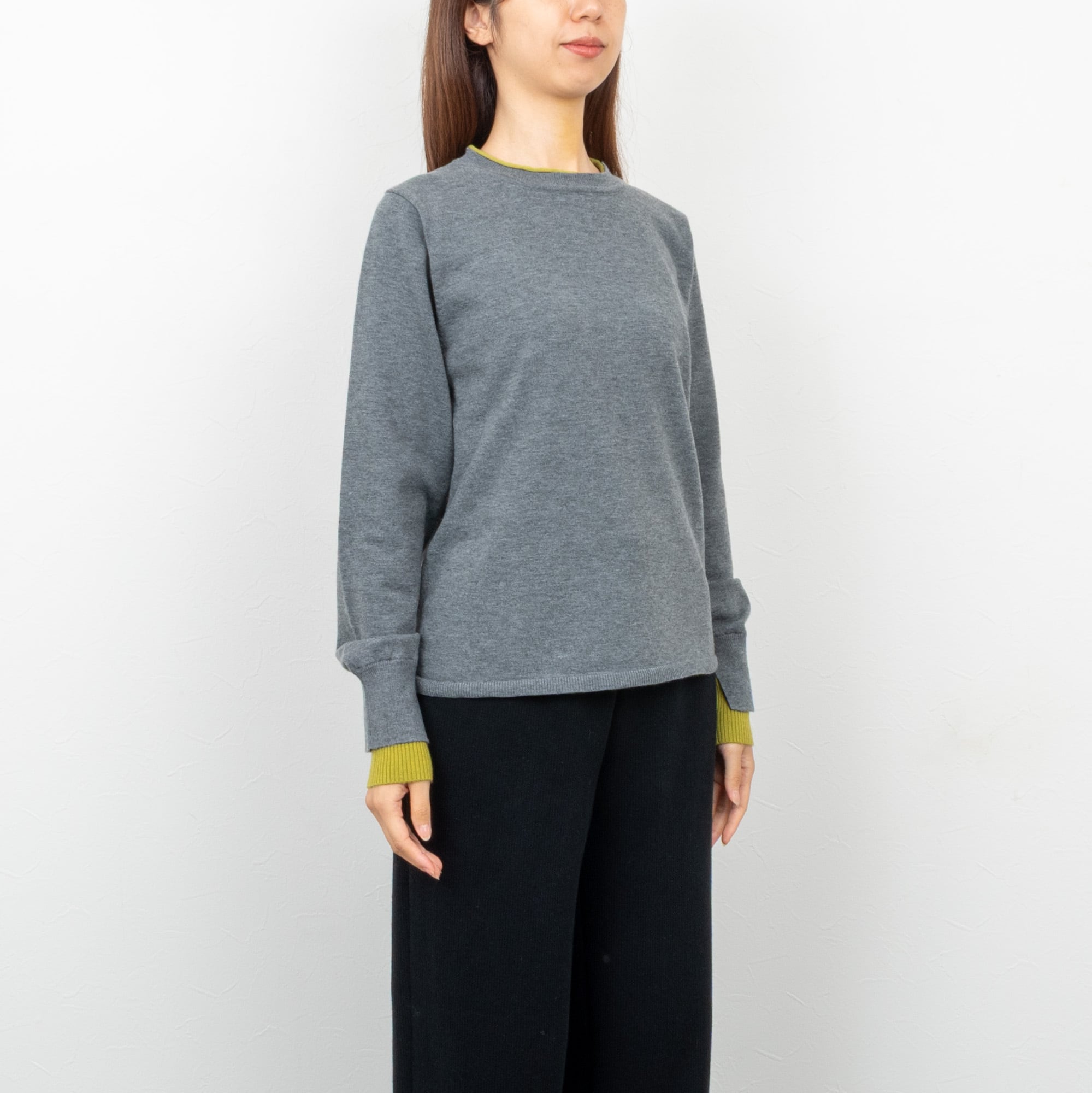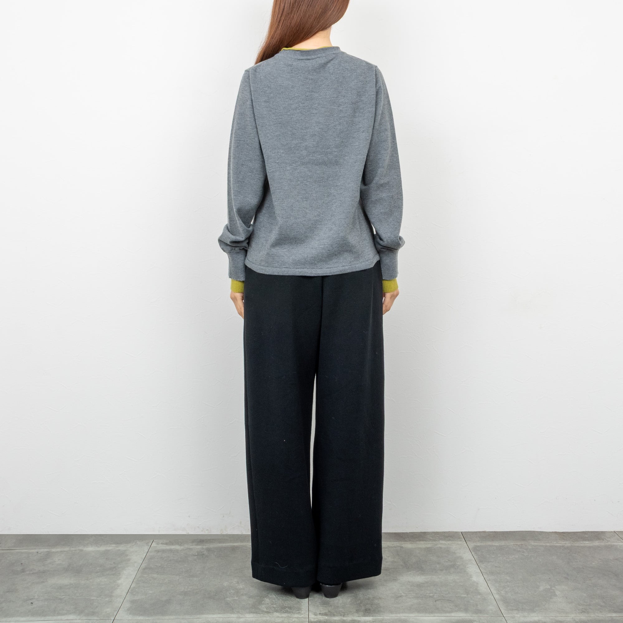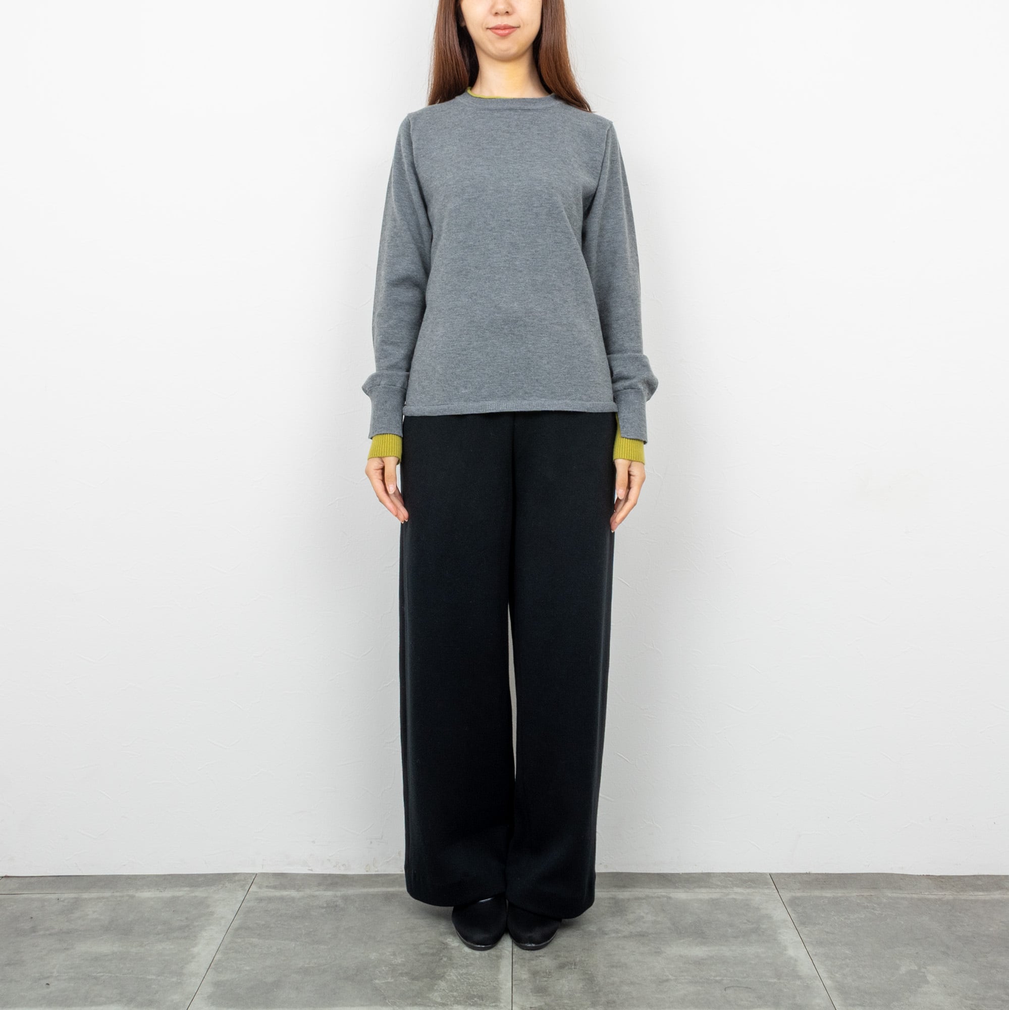 【QTUME/クチューム】ウールミックスバイカラークルーネックトップス(チャコール)