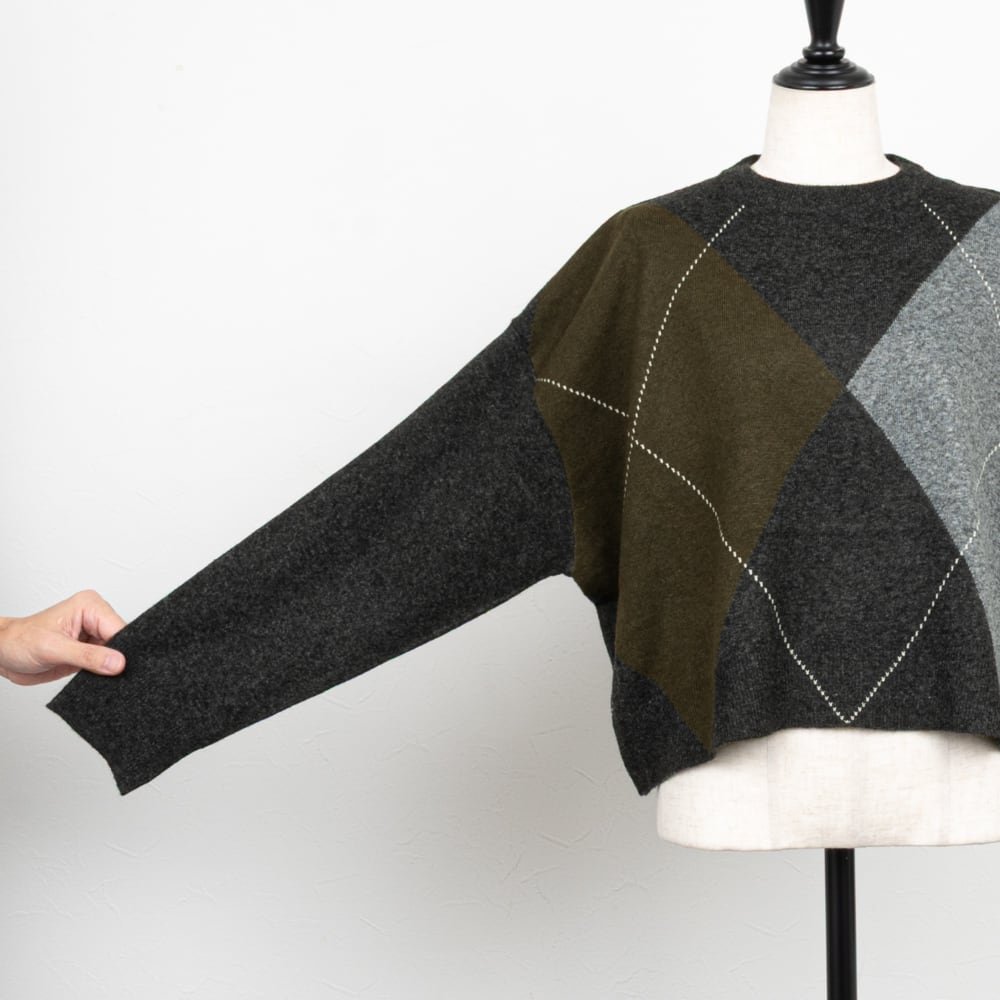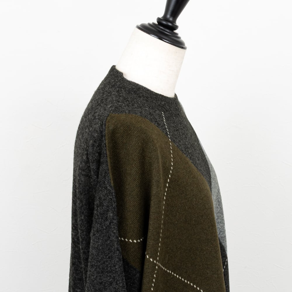 【Munich/ミューニック】アーガイルワイドニットプルオーバー(チャコール)