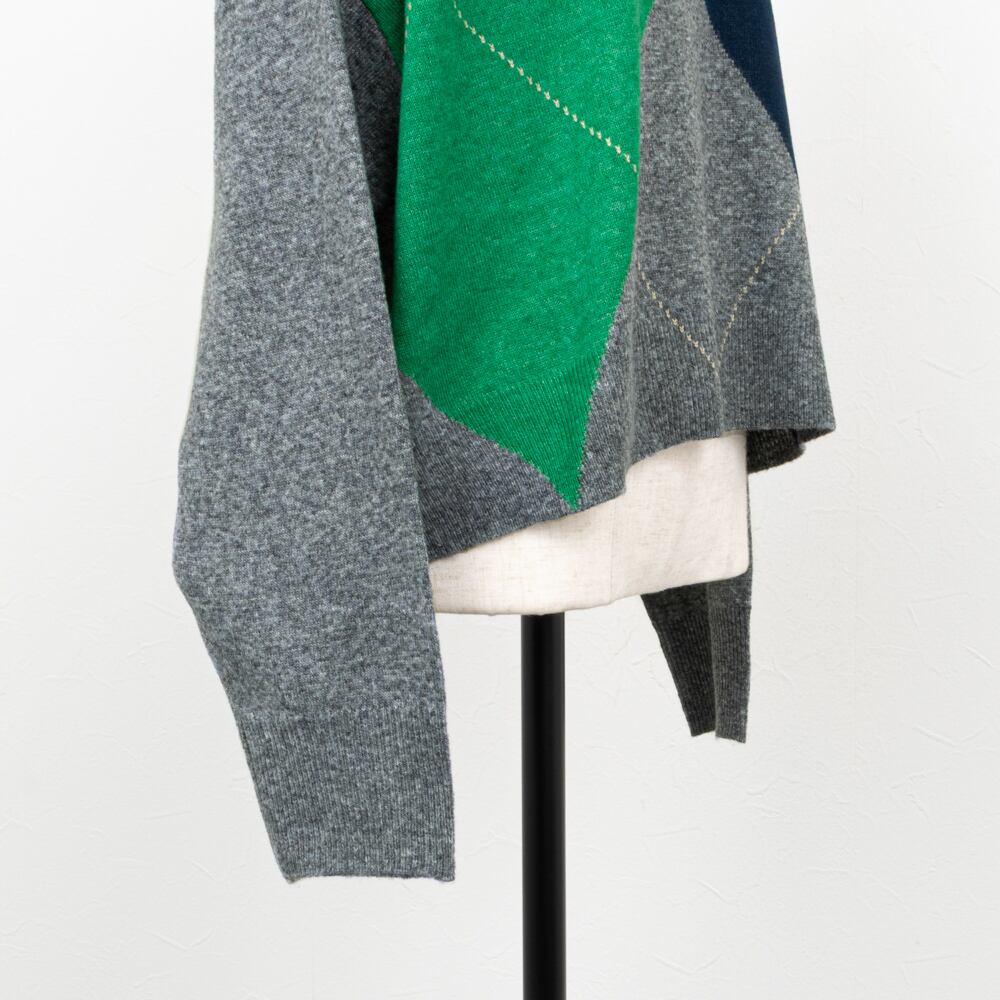 メランジのグレーにネイビーと強いグリーンのアーガイル柄