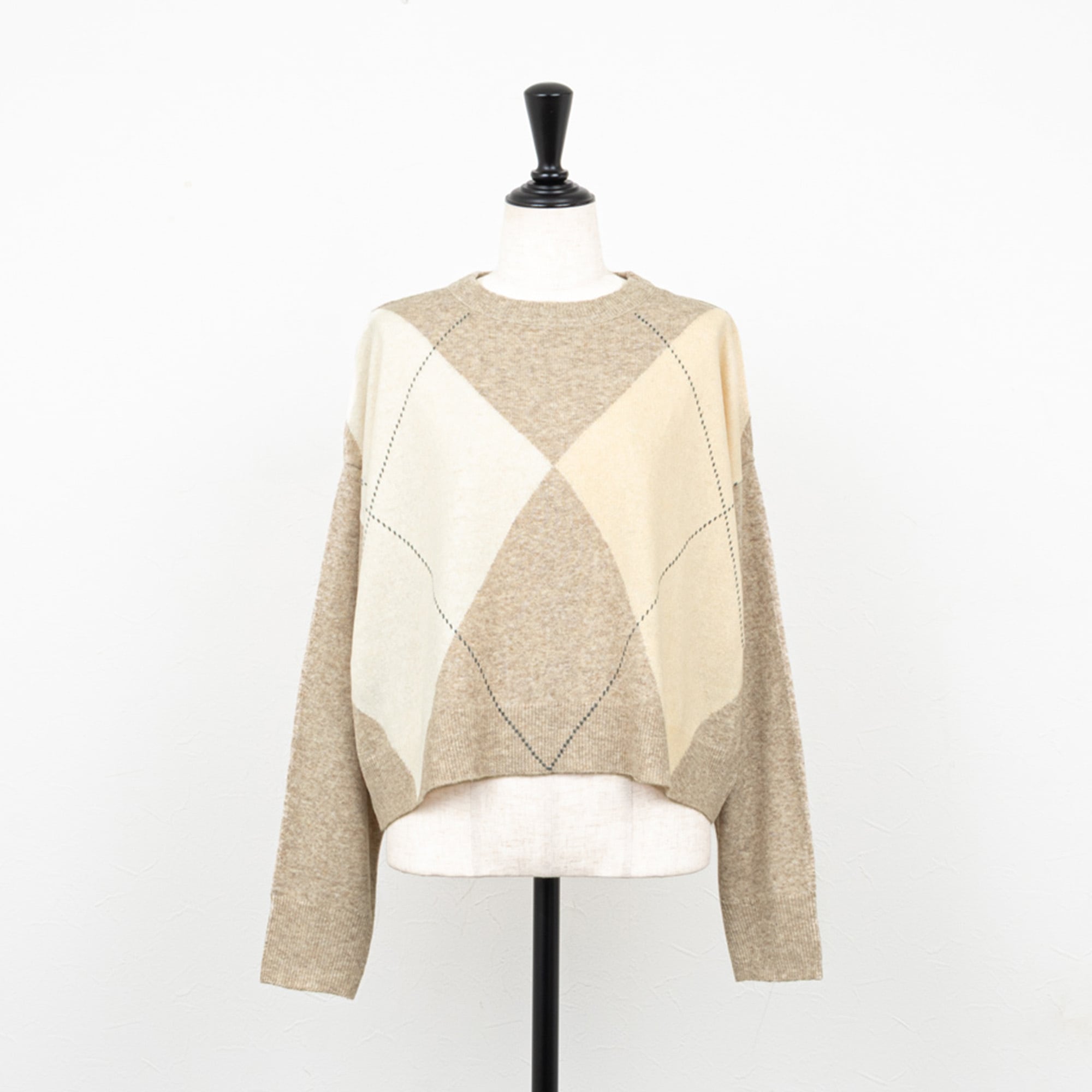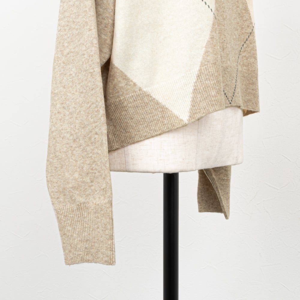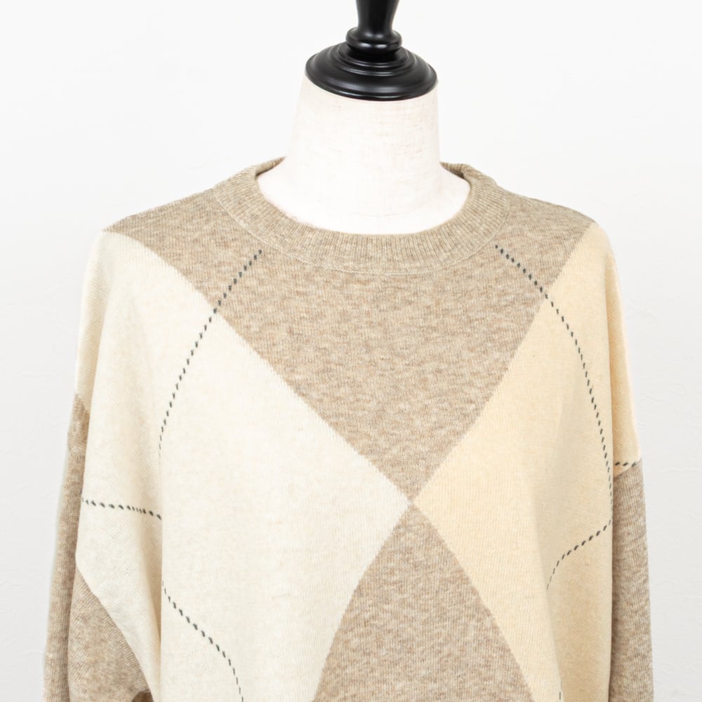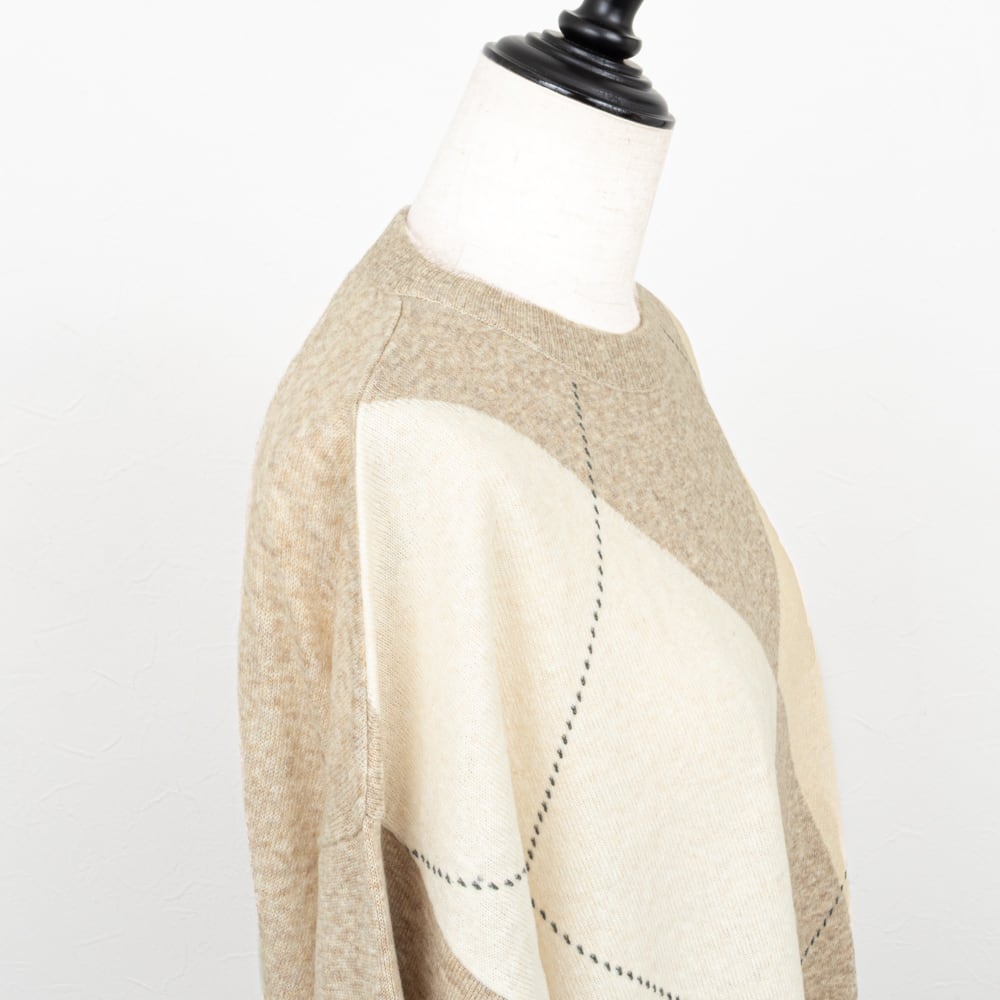 【Munich/ミューニック】アーガイルワイドニットプルオーバー(ベージュ)