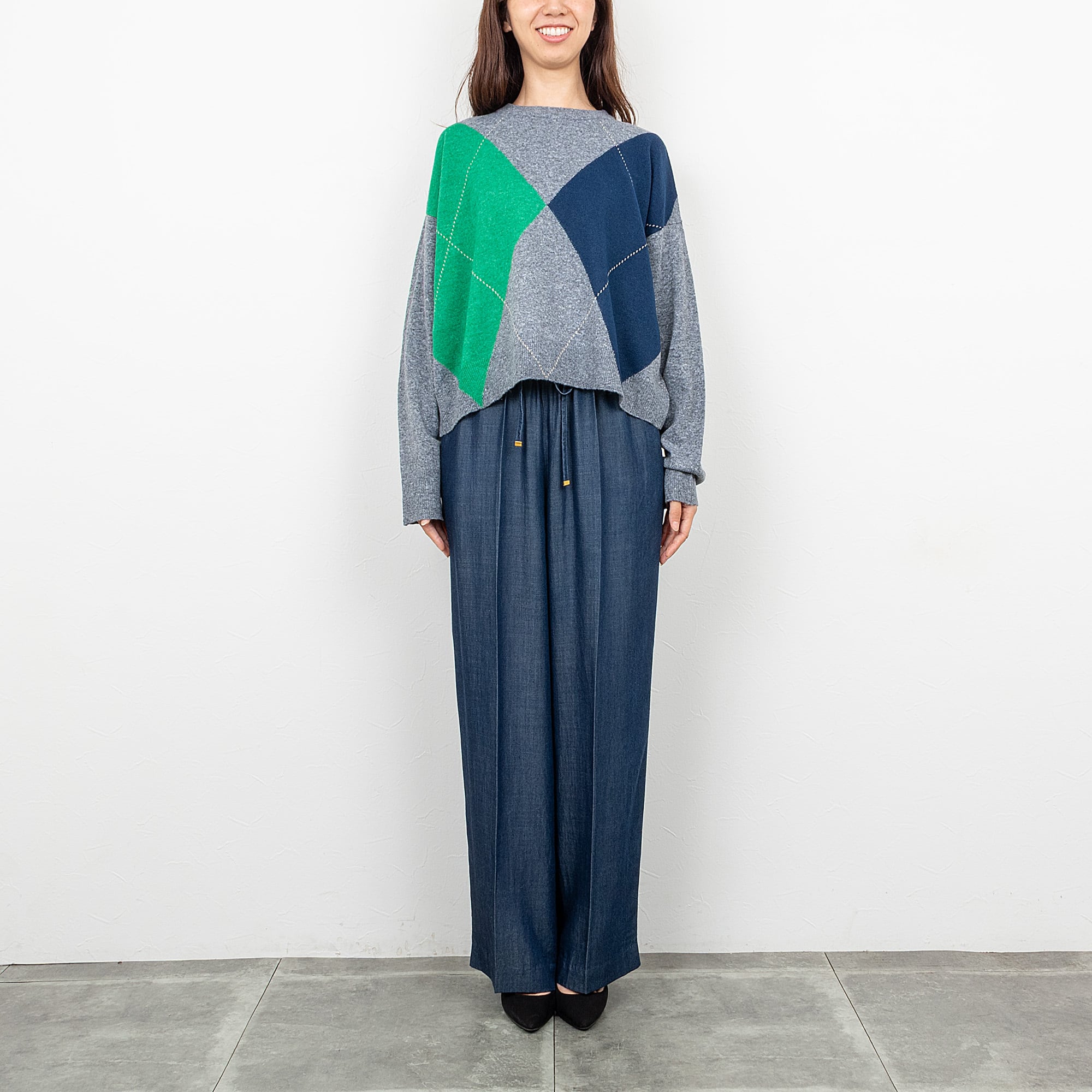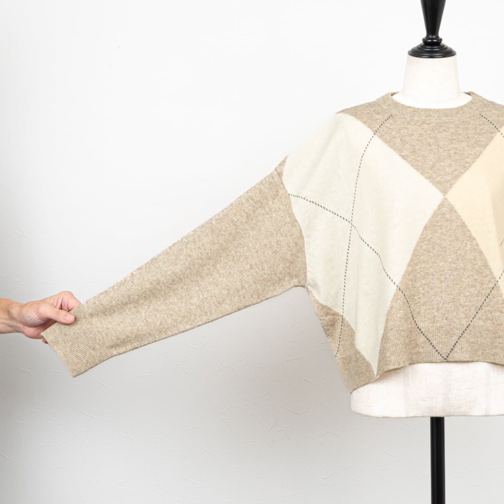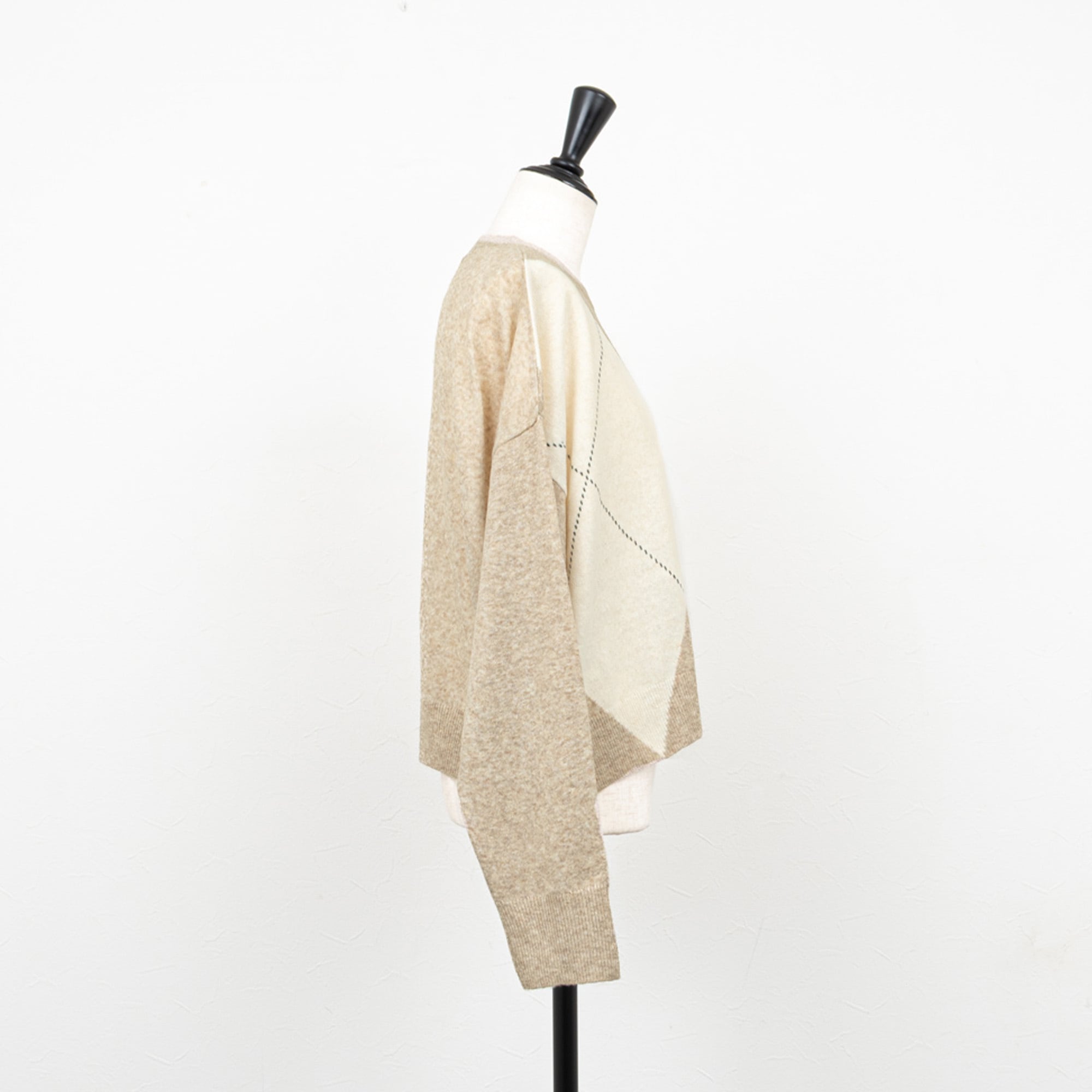 【Munich/ミューニック】アーガイルワイドニットプルオーバー(ベージュ)