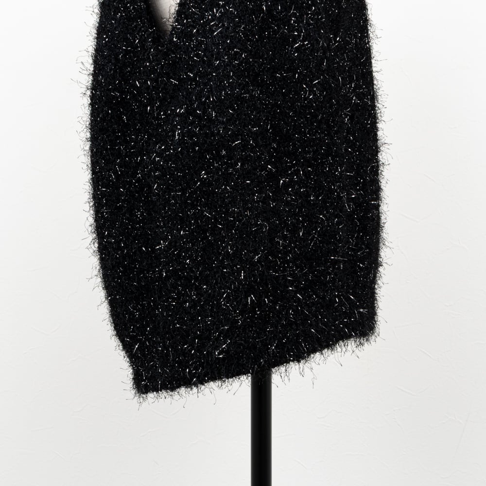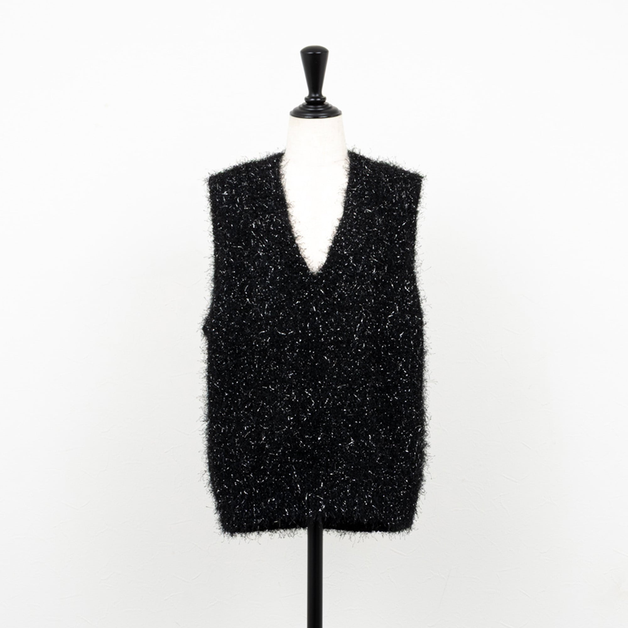 【QTUME/クチューム】シャギーニットVネックベスト(ブラック)