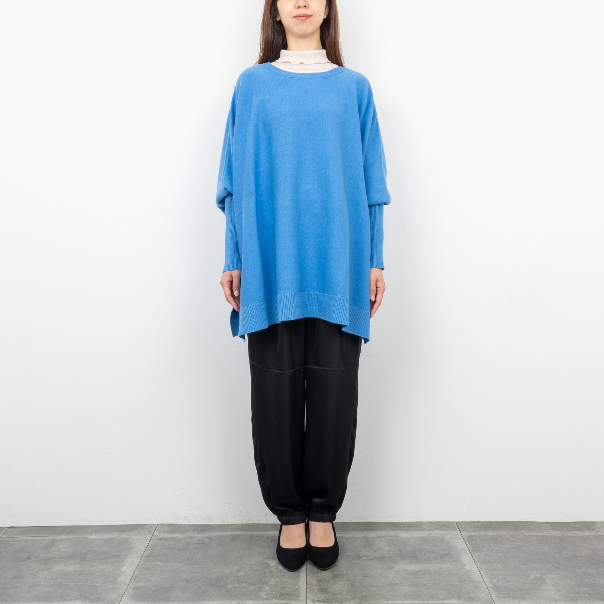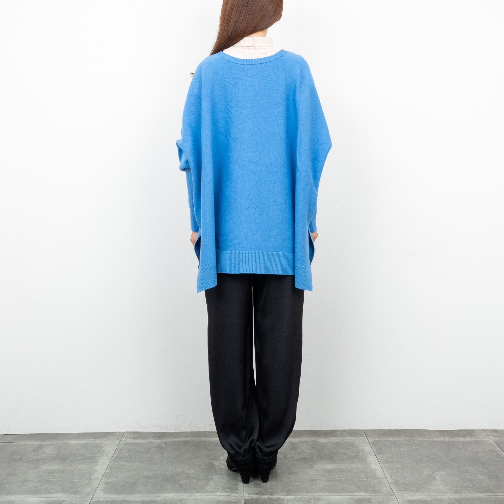 体のラインを拾わずリラクシーなポンチョシルエットのニットプルオーバー。