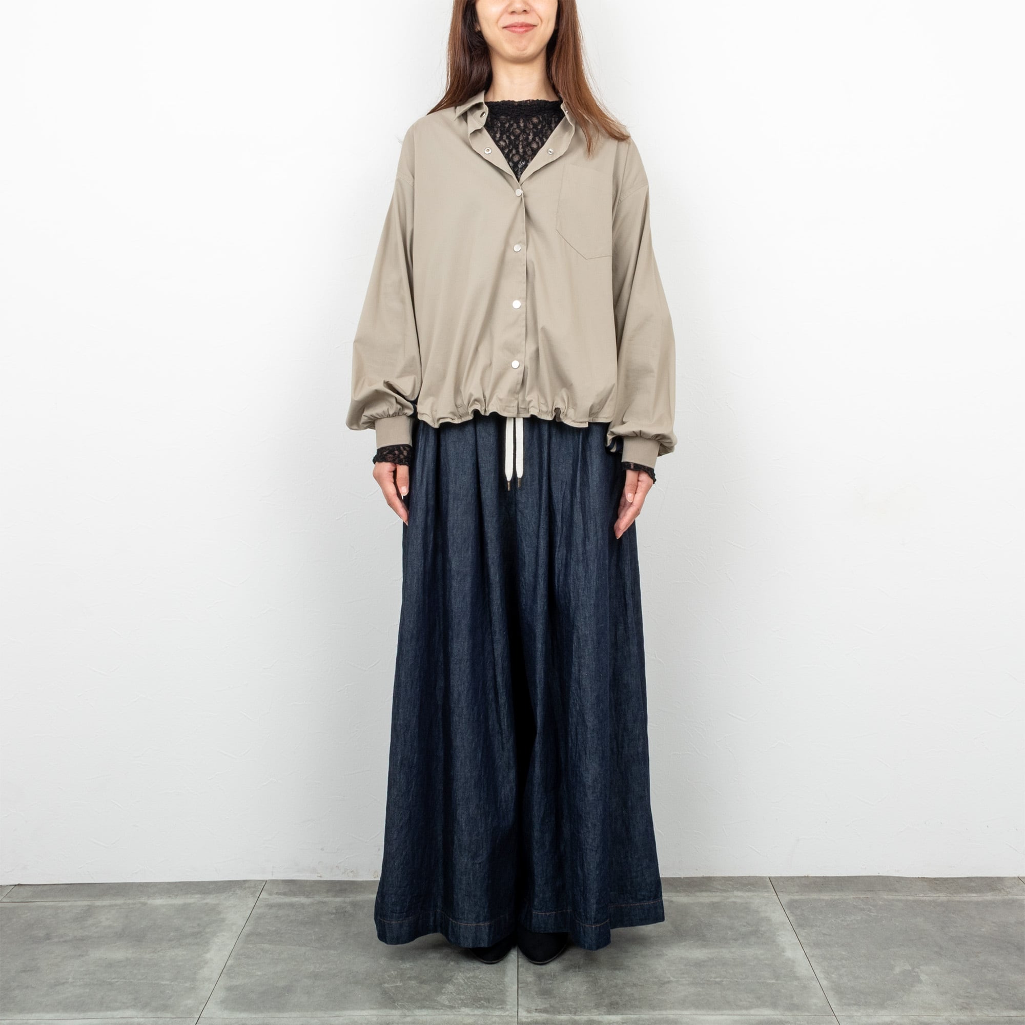 バックギャザーや裾のギャザーで立体感のあるシルエットに、裾のアジャスターでシルエットをアレンジできます。
