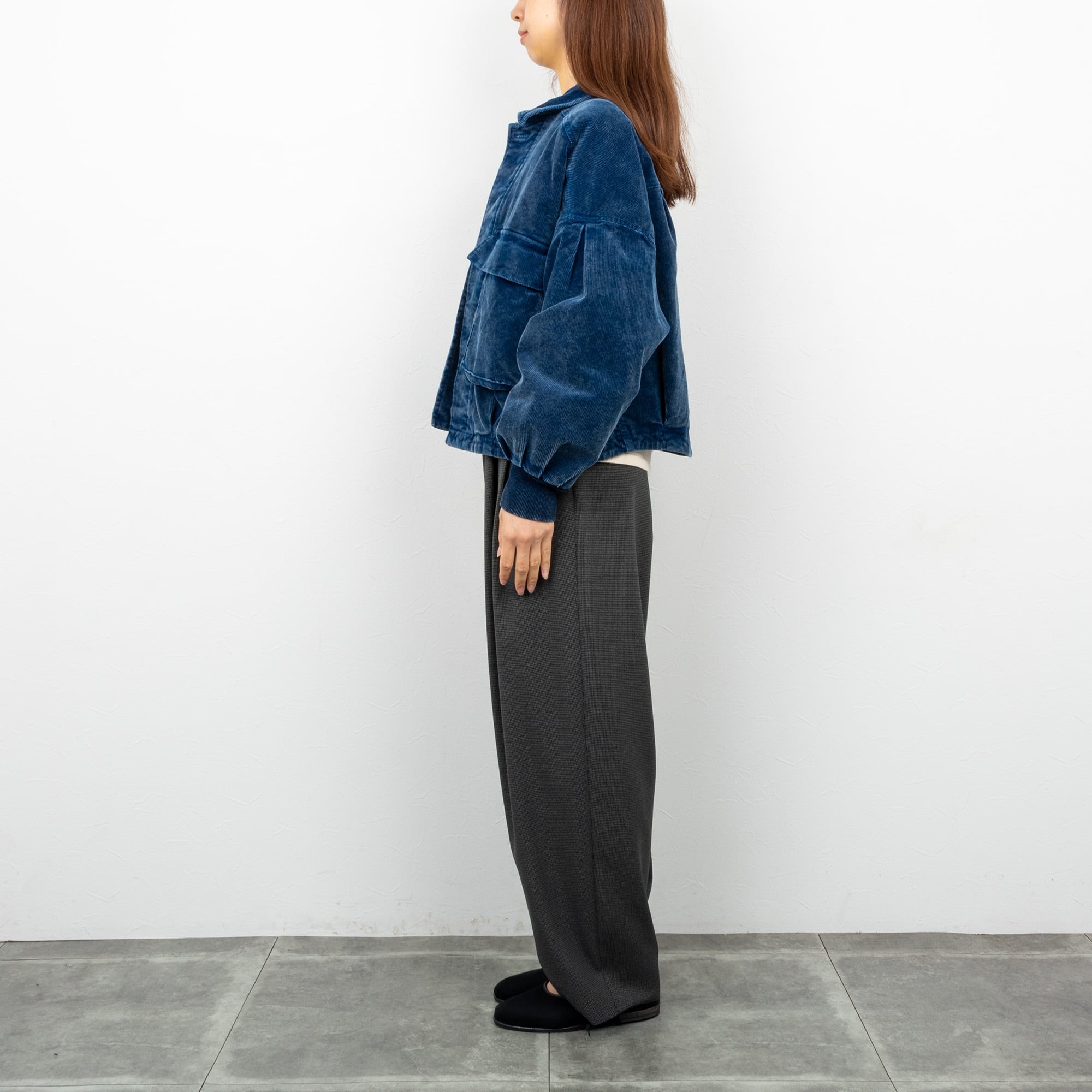 パフスリーブに裾のタックで丸みのあるフォルムに、袖口のリブで袖の膨らみを調整できます。