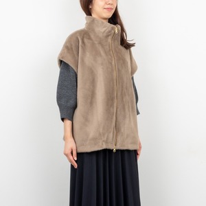 トレンドライクな着こなしに欠かせないスタンドカラーのファーベスト。