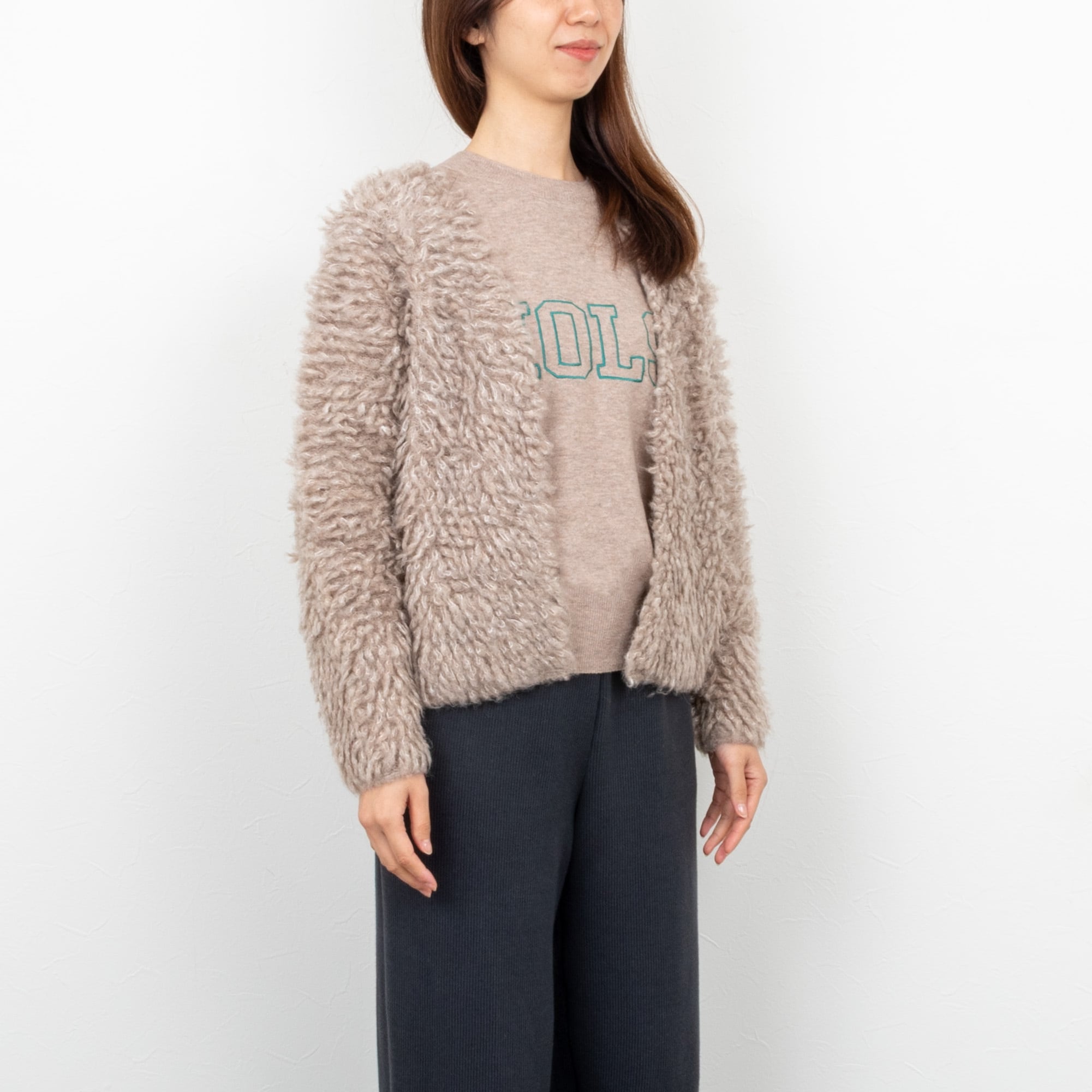 プードルのような起毛が、ふわふわモコモコの軽く羽織りやすい着流しのカーディガン。