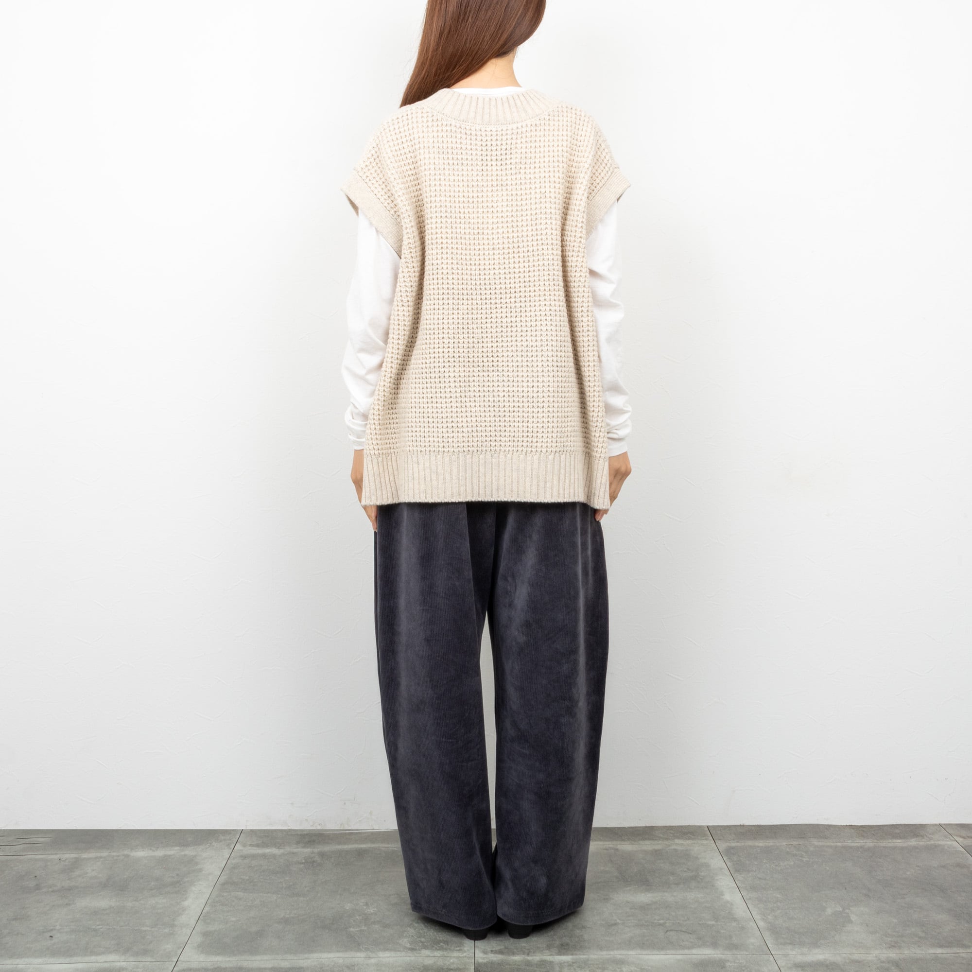 ゆったりとしたシルエットながら、サイドに施されたタックがカジュアルになり過ぎないすっきりとした立体感をプラス。