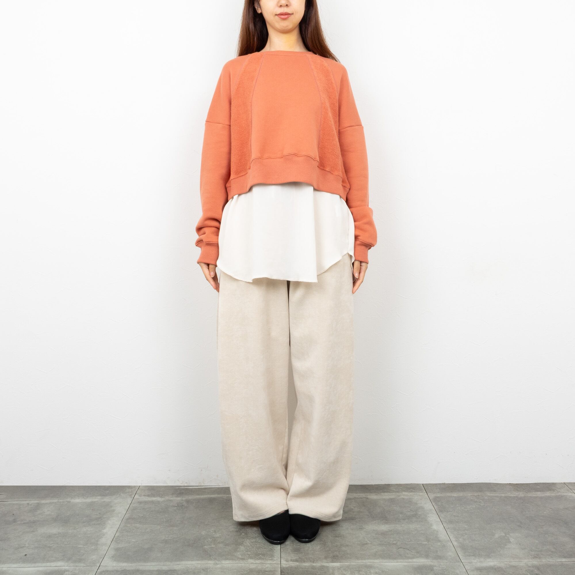 肌離れの良い裏毛で、丸みのあるフォルムが女性らしいクロップド丈。