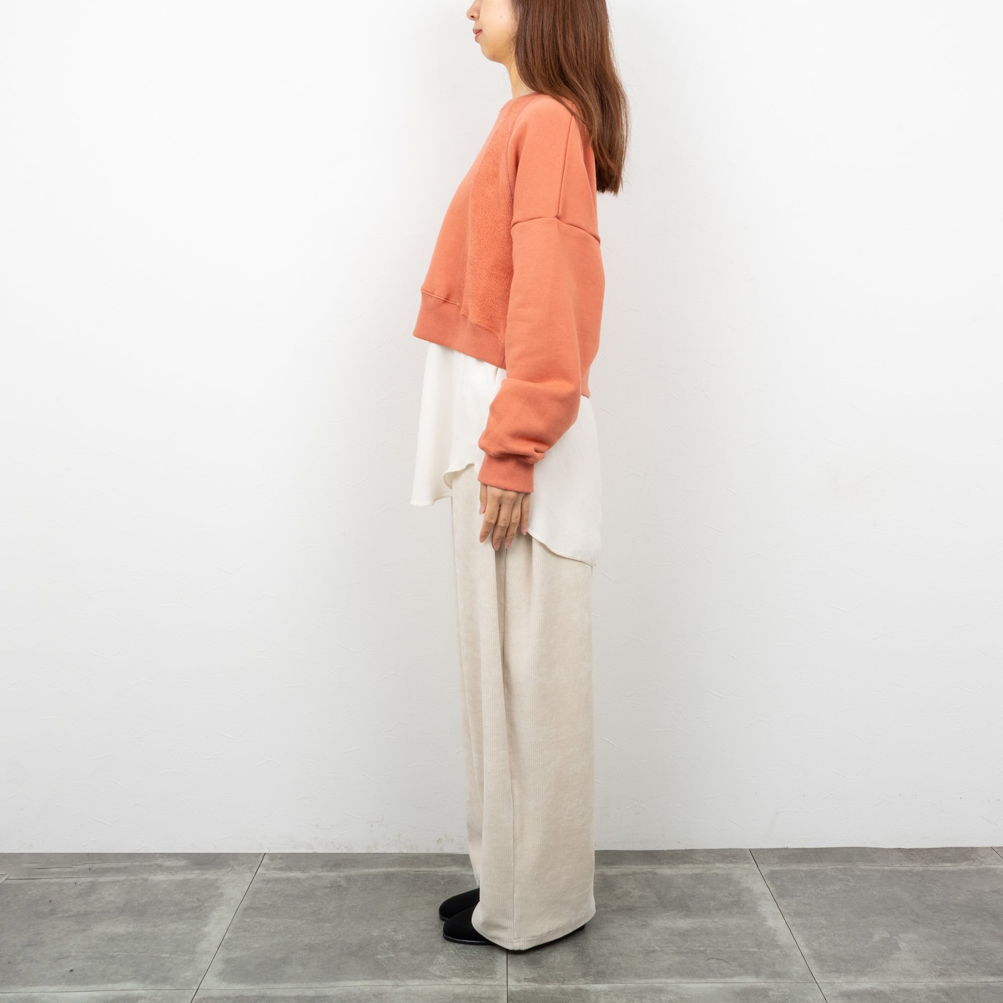 肌離れの良い裏毛で、丸みのあるフォルムが女性らしいクロップド丈。