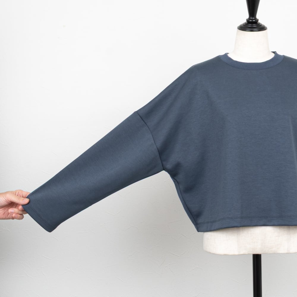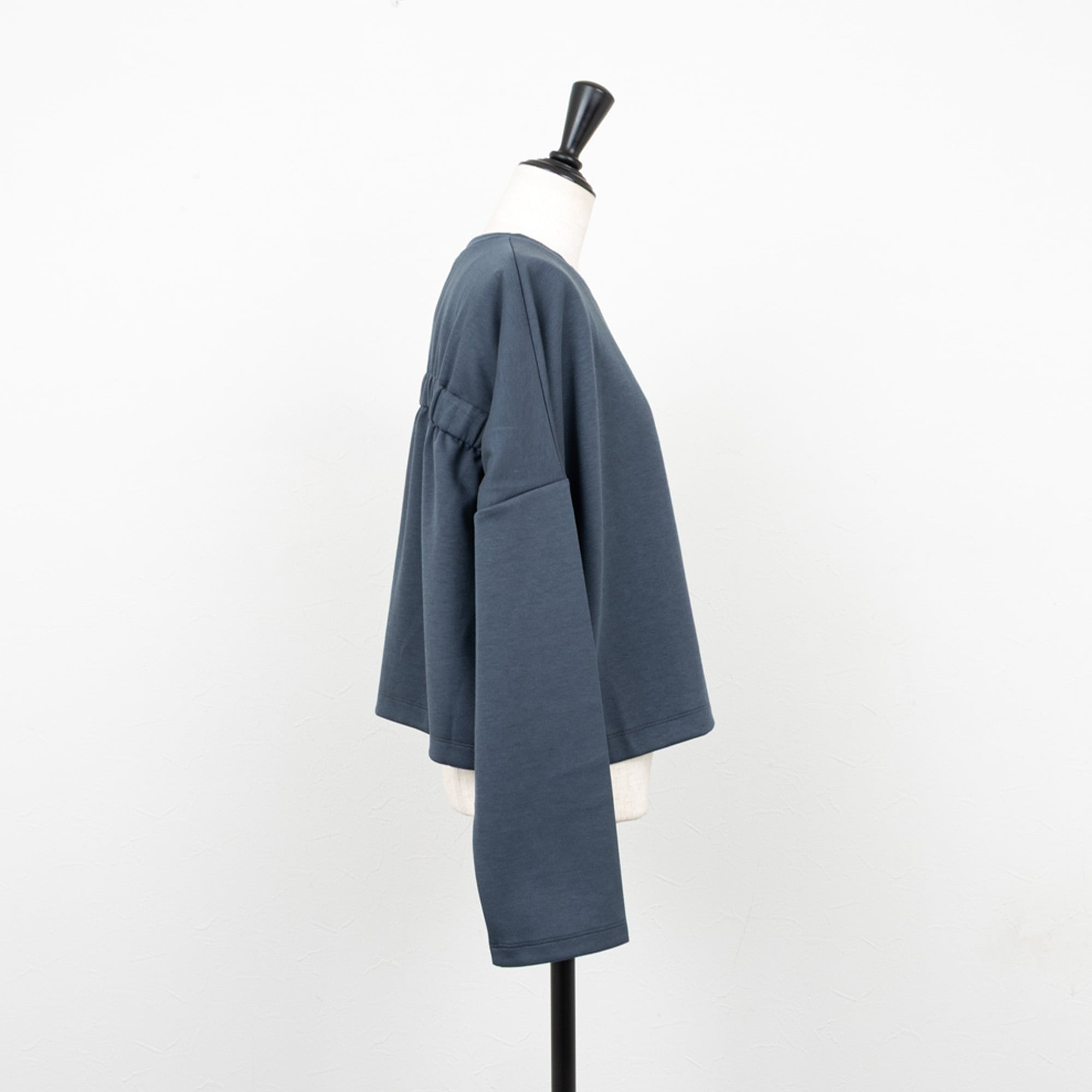 ややショート丈で後ろ身頃のゴムギャザーがポイントのダンボールプルオーバー。