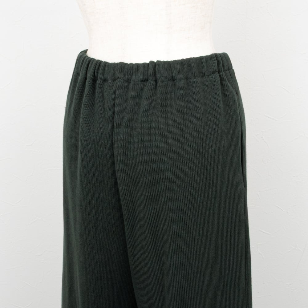 しっかりした編み目のニットライクな表面に、裏面は柔らかいジャージー組織で編んだセミワイドパンツ。