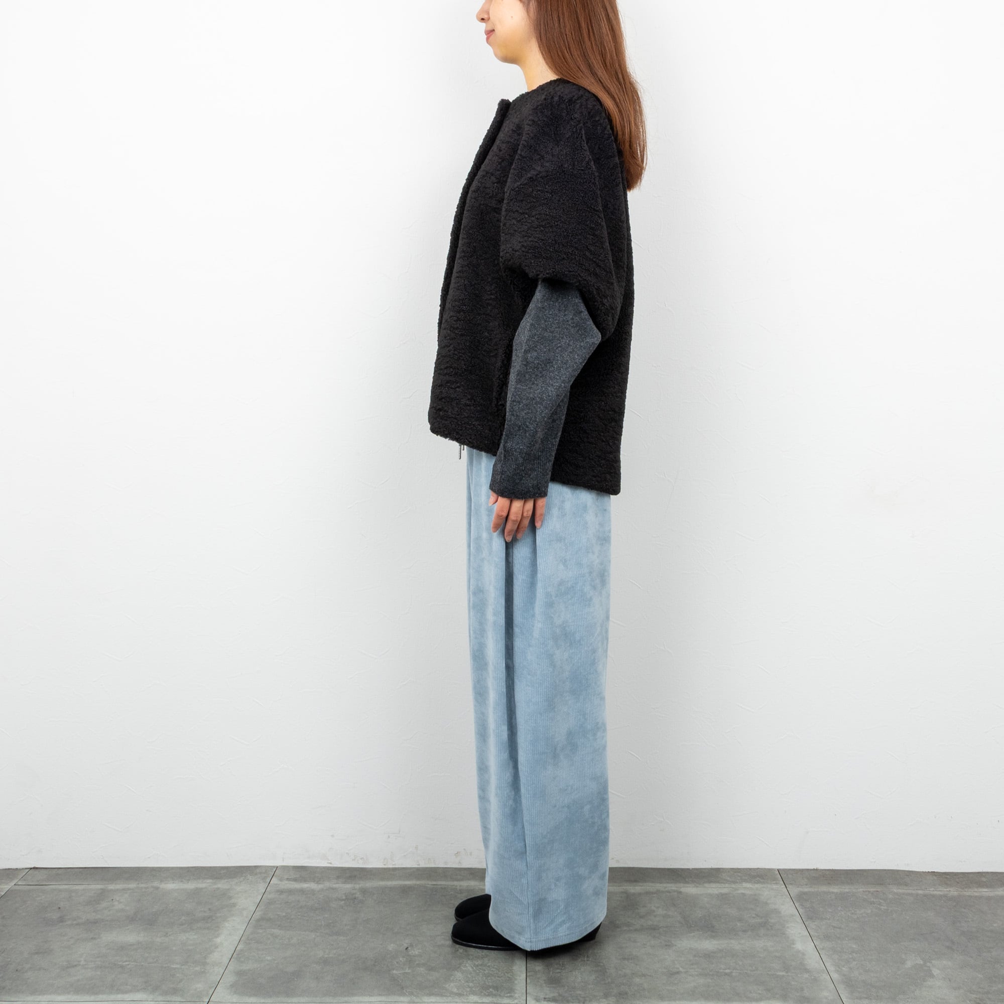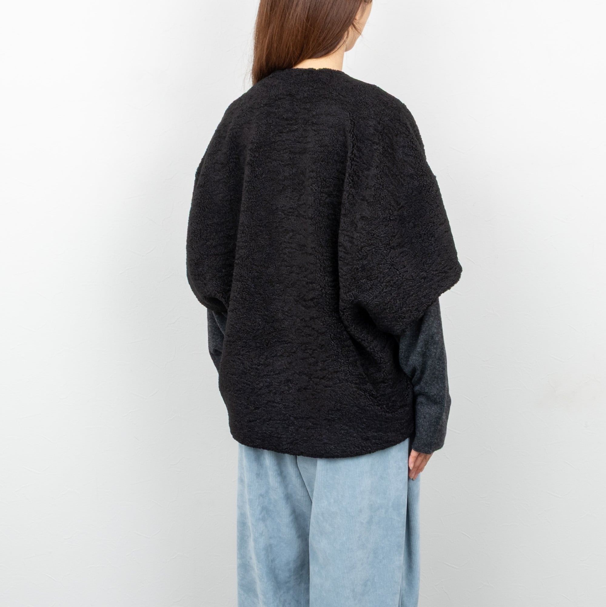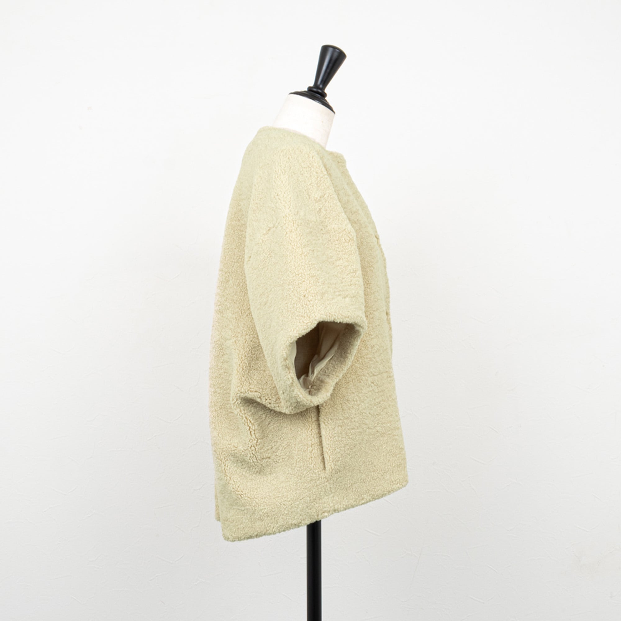 ボアの起毛感とコクーンシルエットが可愛らしい半袖のジャケット。