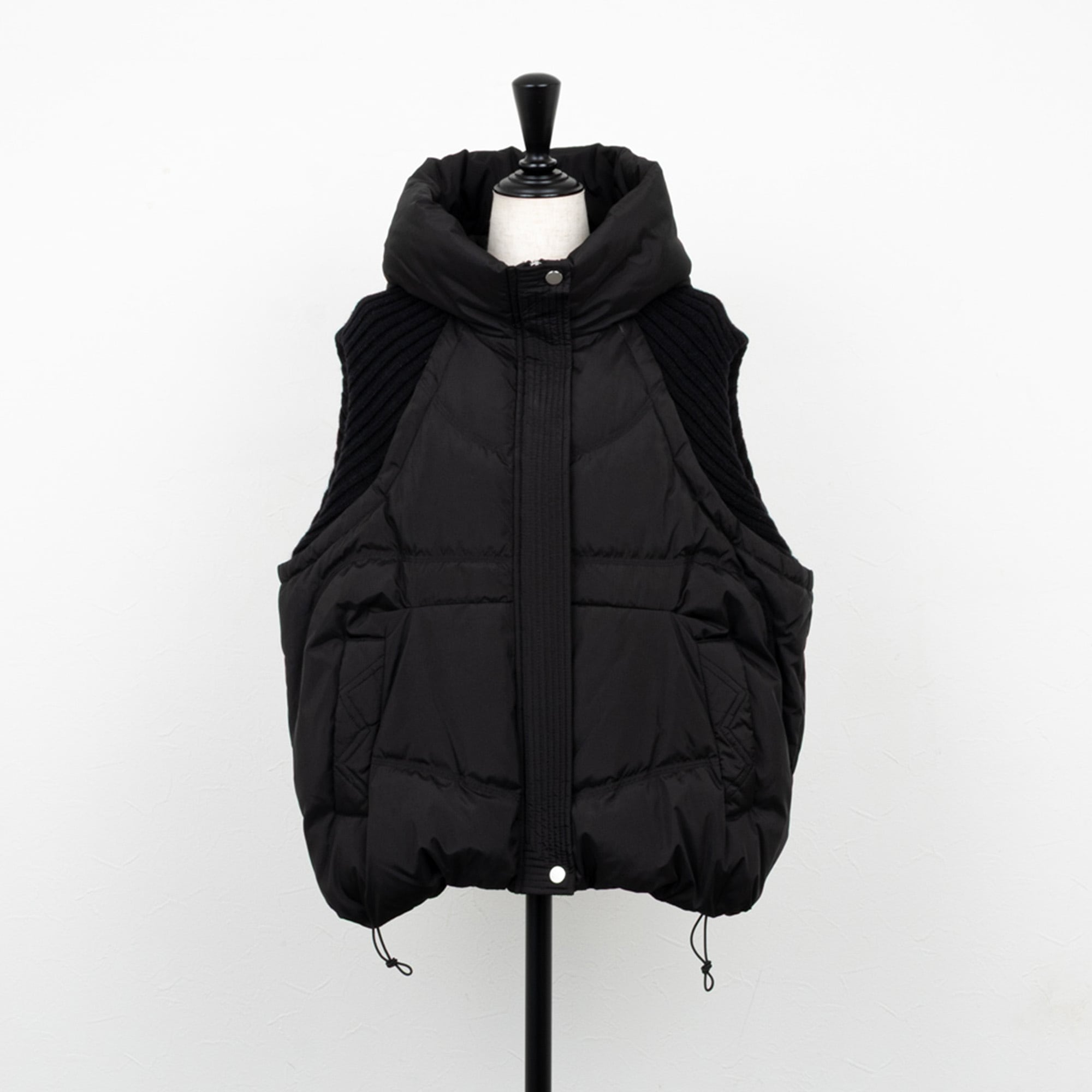 【PASSIONE/パシオーネ】ショルダーリブフードダウンベスト(ブラック)