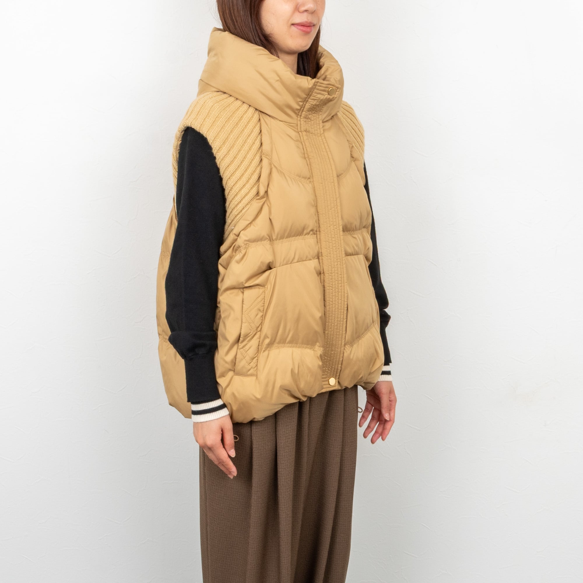 【PASSIONE/パシオーネ】ショルダーリブフードダウンベスト(キャメル)