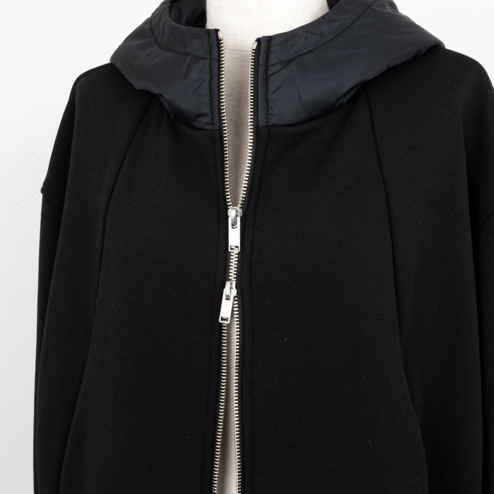 身頃はボンバーヒート(裏起毛)、フードは中綿の異素材ドッキングのデザイン。
