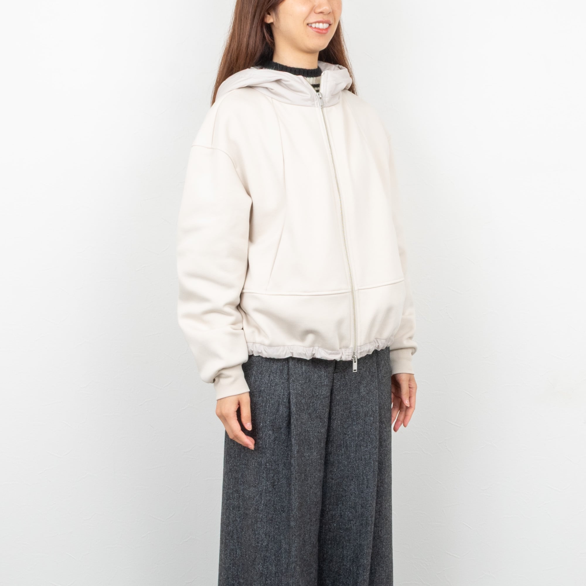 【PASSIONE/パシオーネ】裏起毛フロントジップパーカー(グレージュ)