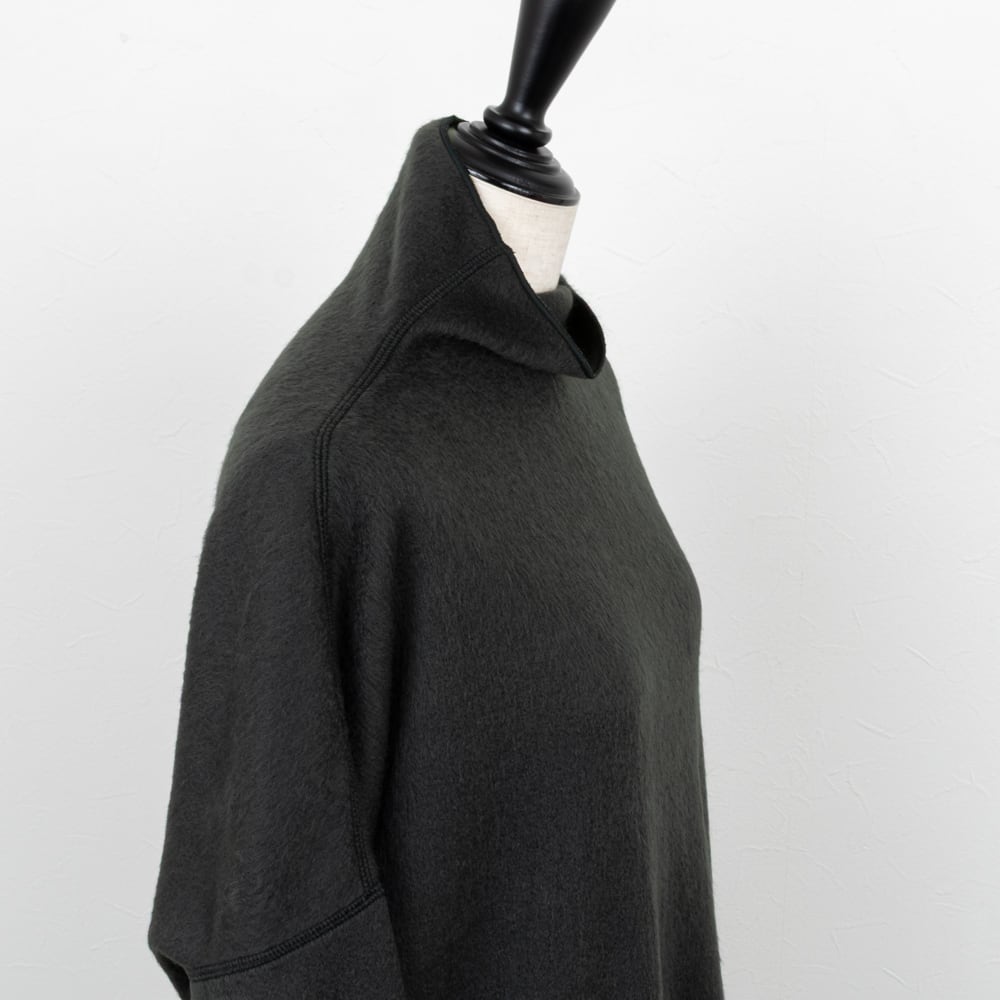 体をふわっと覆うワイドルーズな身頃、ゆるハイネックが女性らしい一枚です。