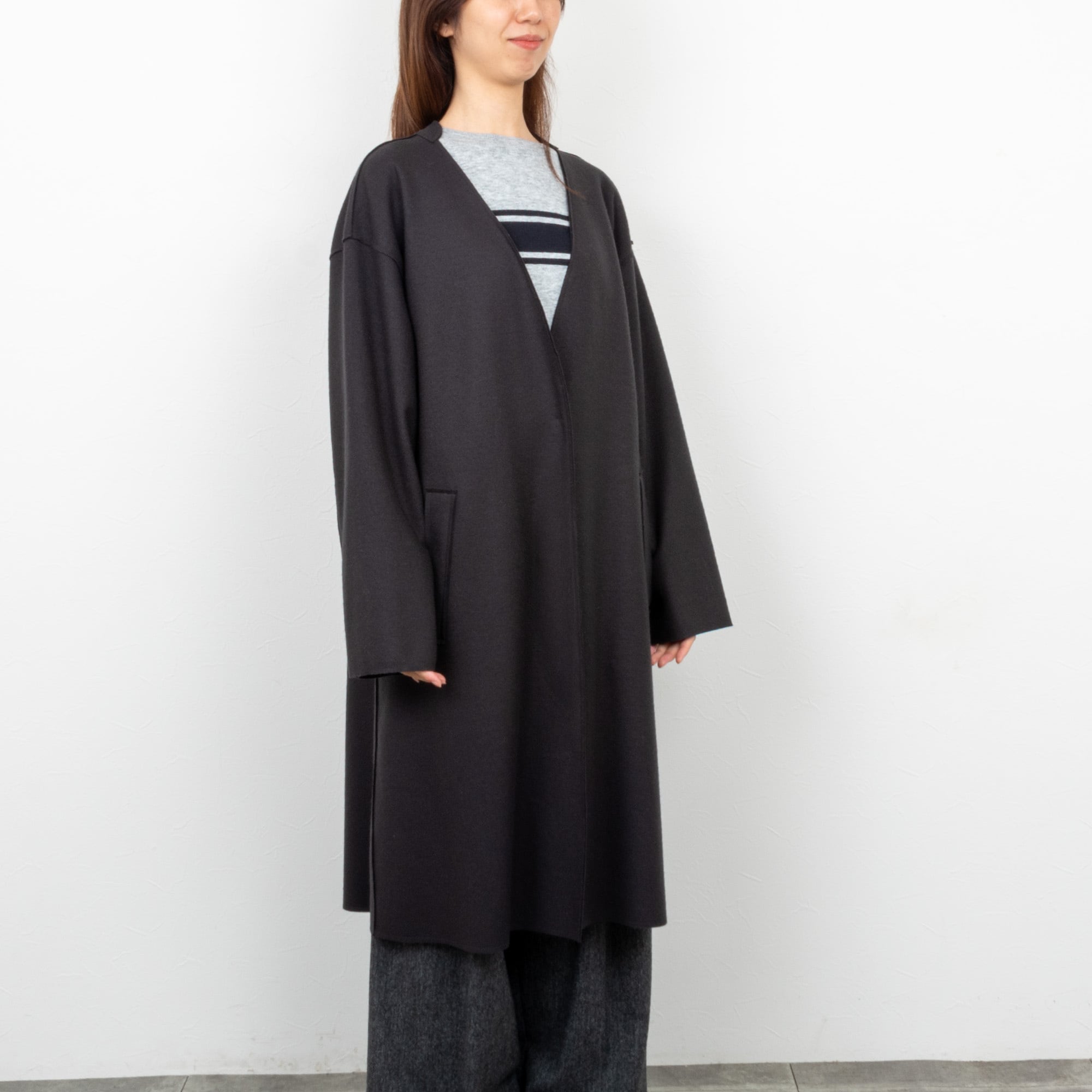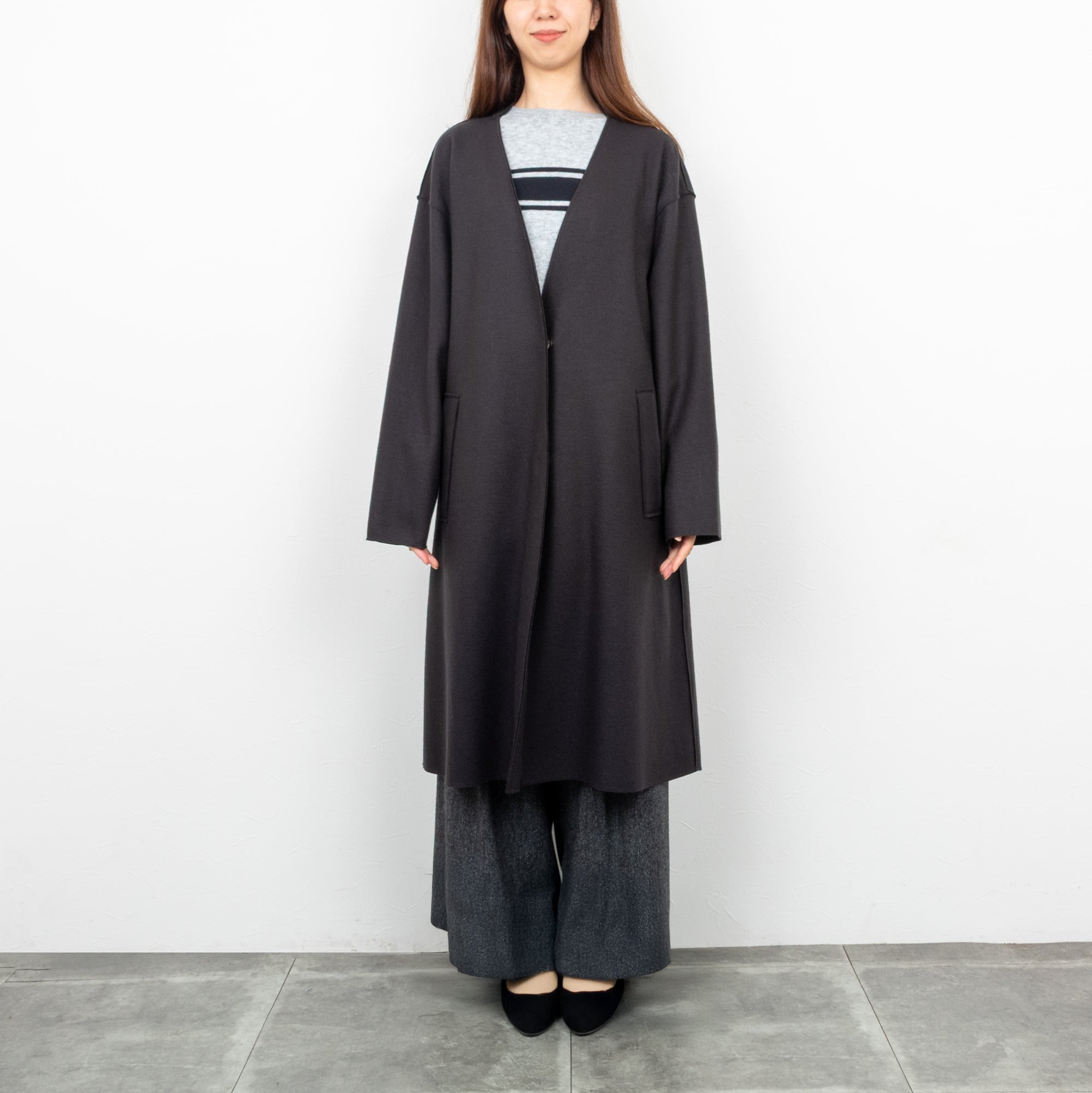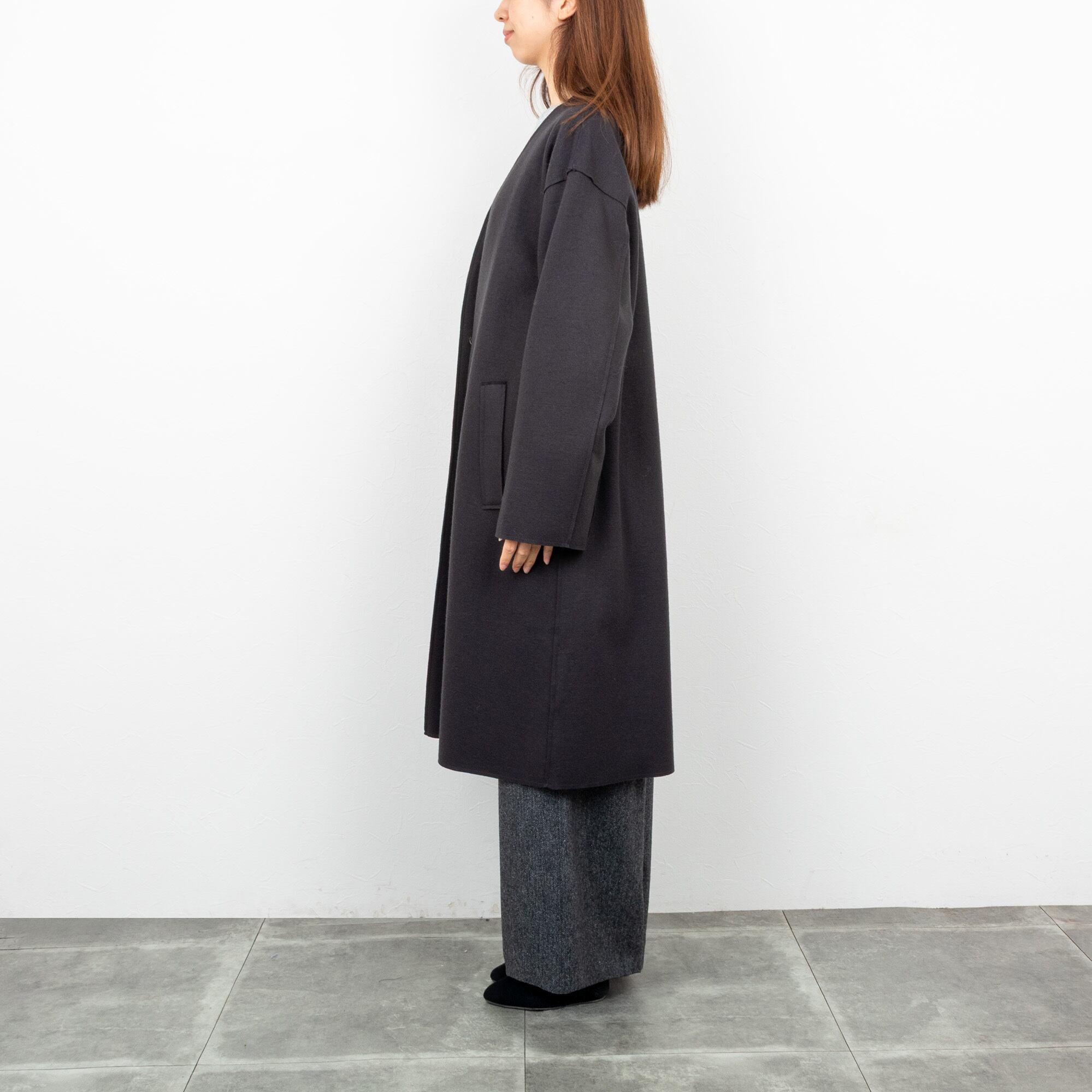 【QTUME/クチューム】メルトンウールノーカラーミドルコート(チャコール)