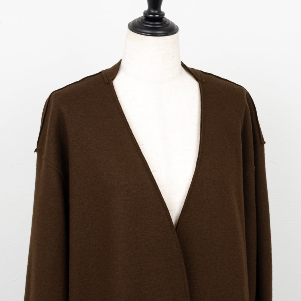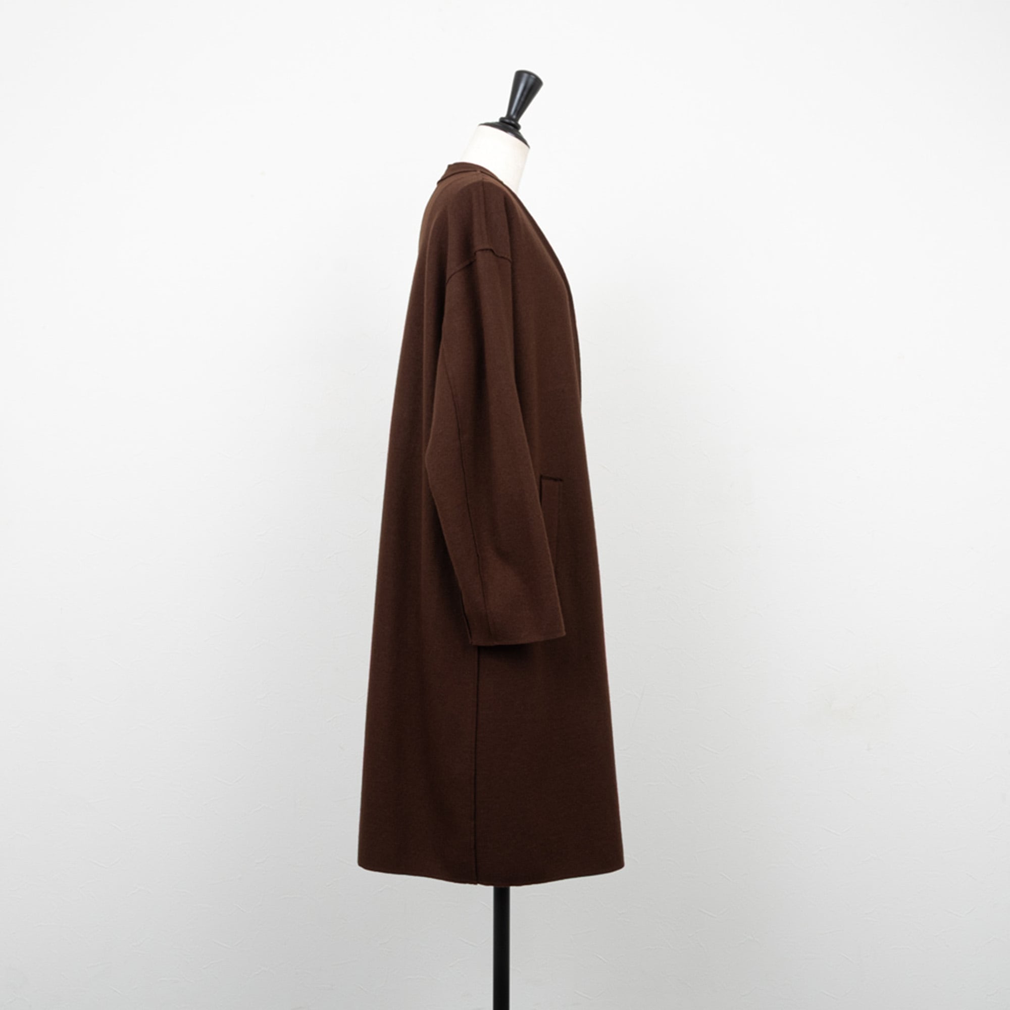 【QTUME/クチューム】メルトンウールノーカラーミドルコート(ブラウン)