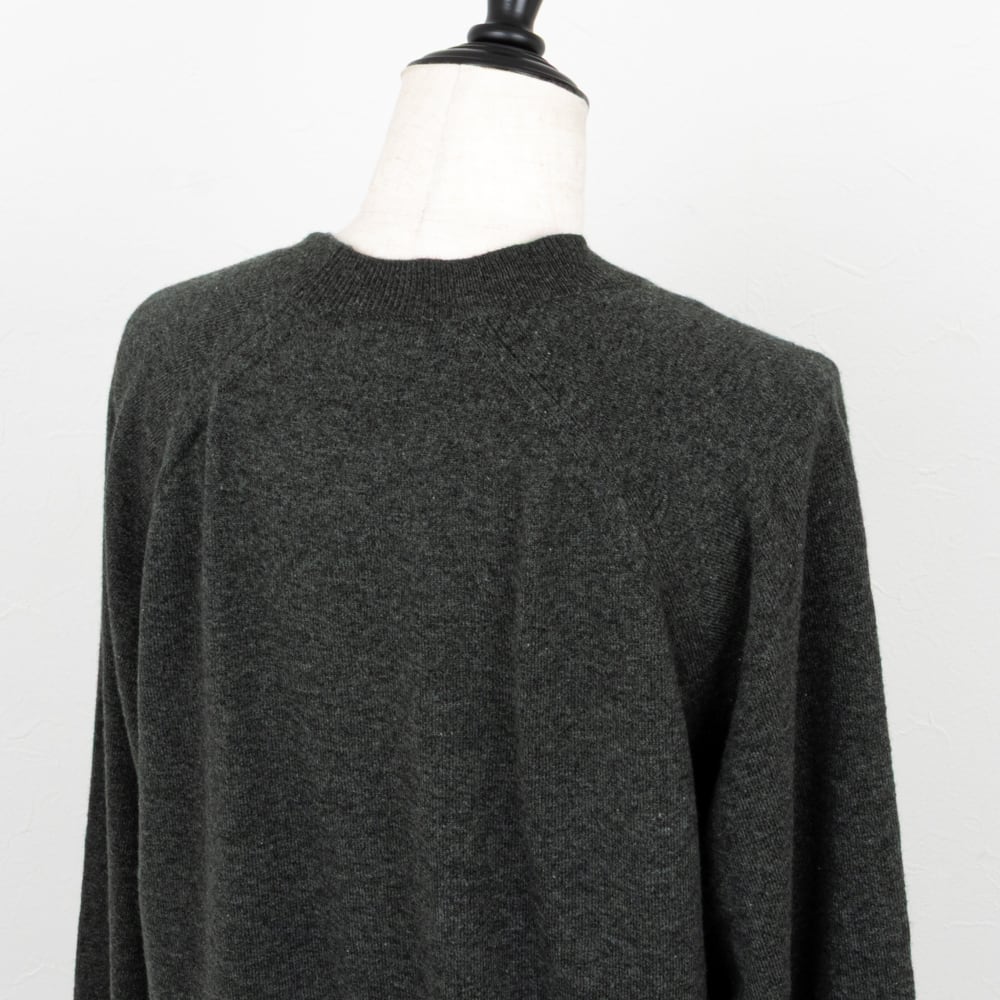 シンプルなラグランスリーブのニットの胸元に、ロゴ刺繍が入ったハイゲージのニットプルオーバー。