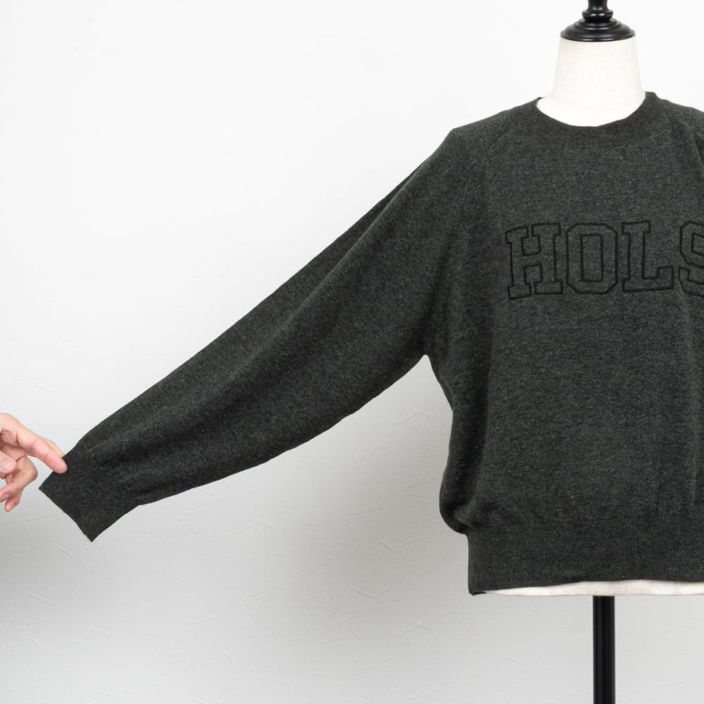 ラグランスリーブのシンプルなロゴ刺繍ニット