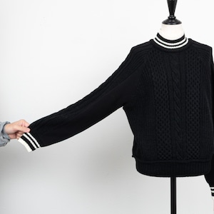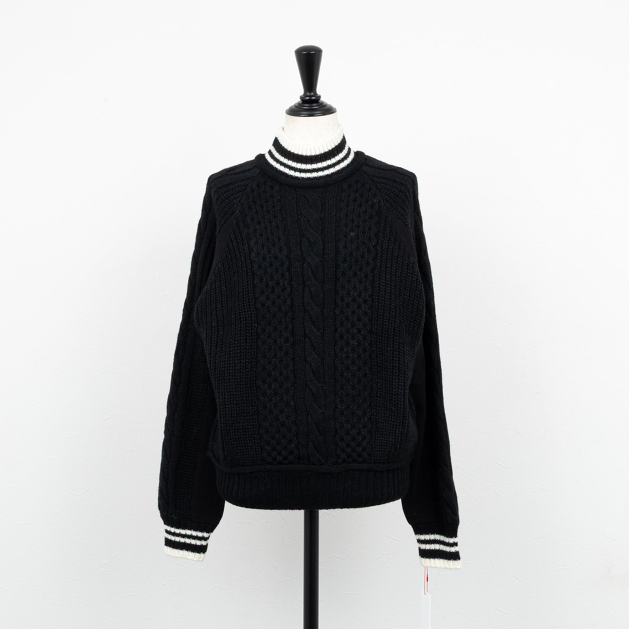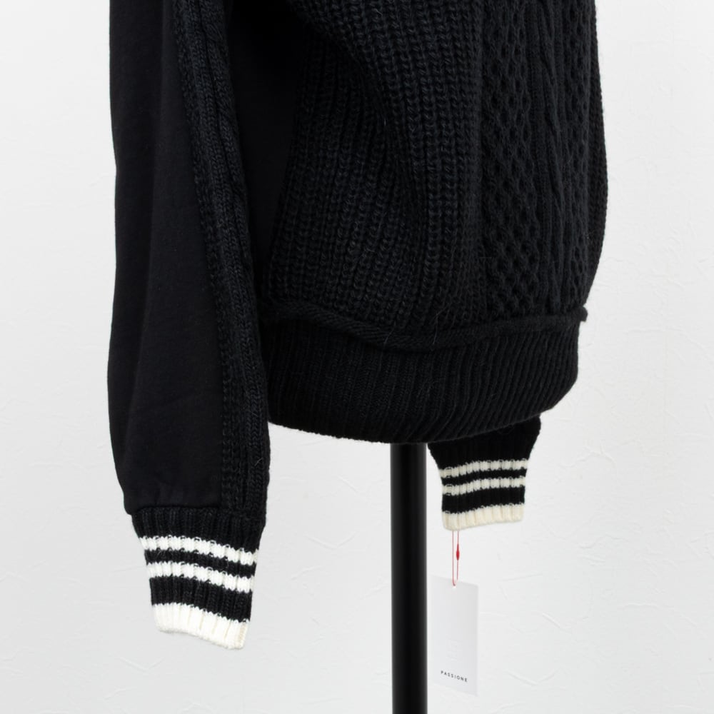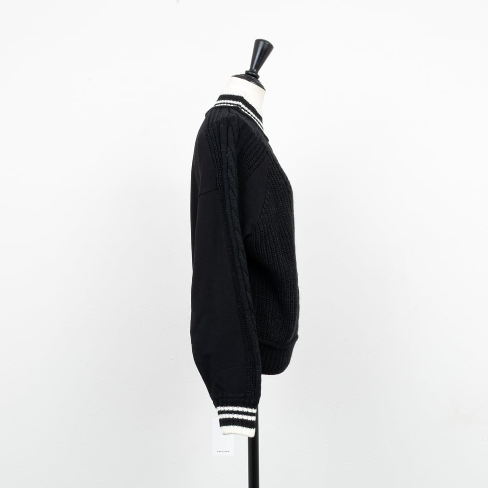 【PASSIONE/パシオーネ】スウェットコンビケーブルニットプルオーバー(ブラック)