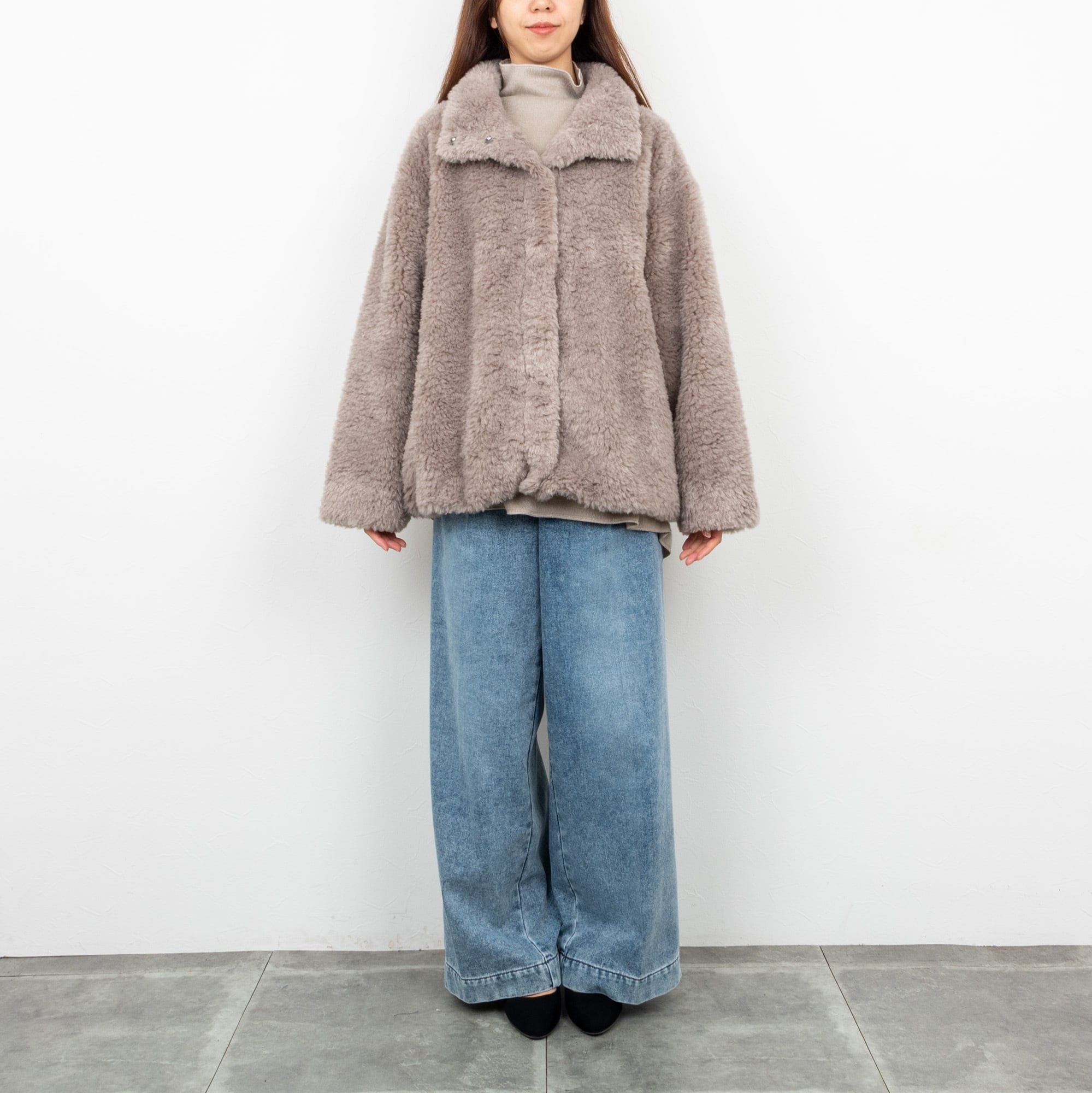 【MICA&DEAL/マイカアンドディール】スタンドカラーボアブルゾン(グレージュ)