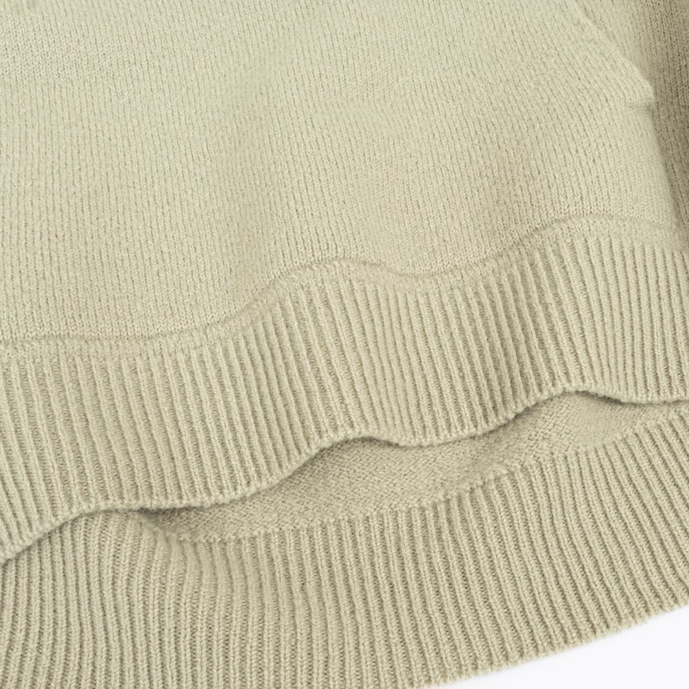 編みで作ったカンガルーポケットはすっきりとした見た目に。
