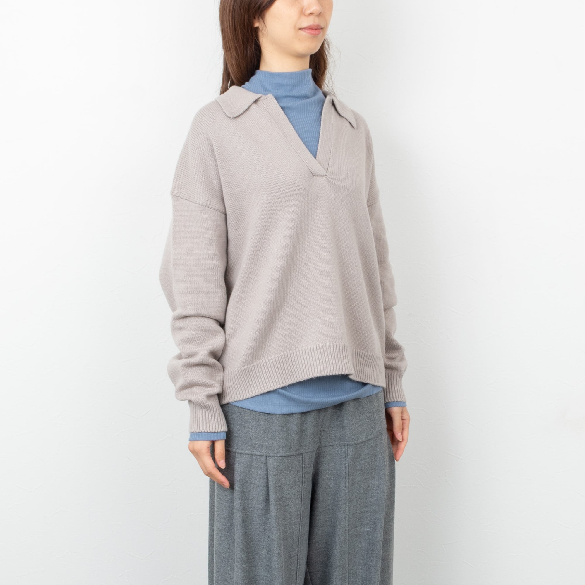 【EMMACULATE/エマキュレイト】スキッパーネックニットプルオーバー(グレージュ)