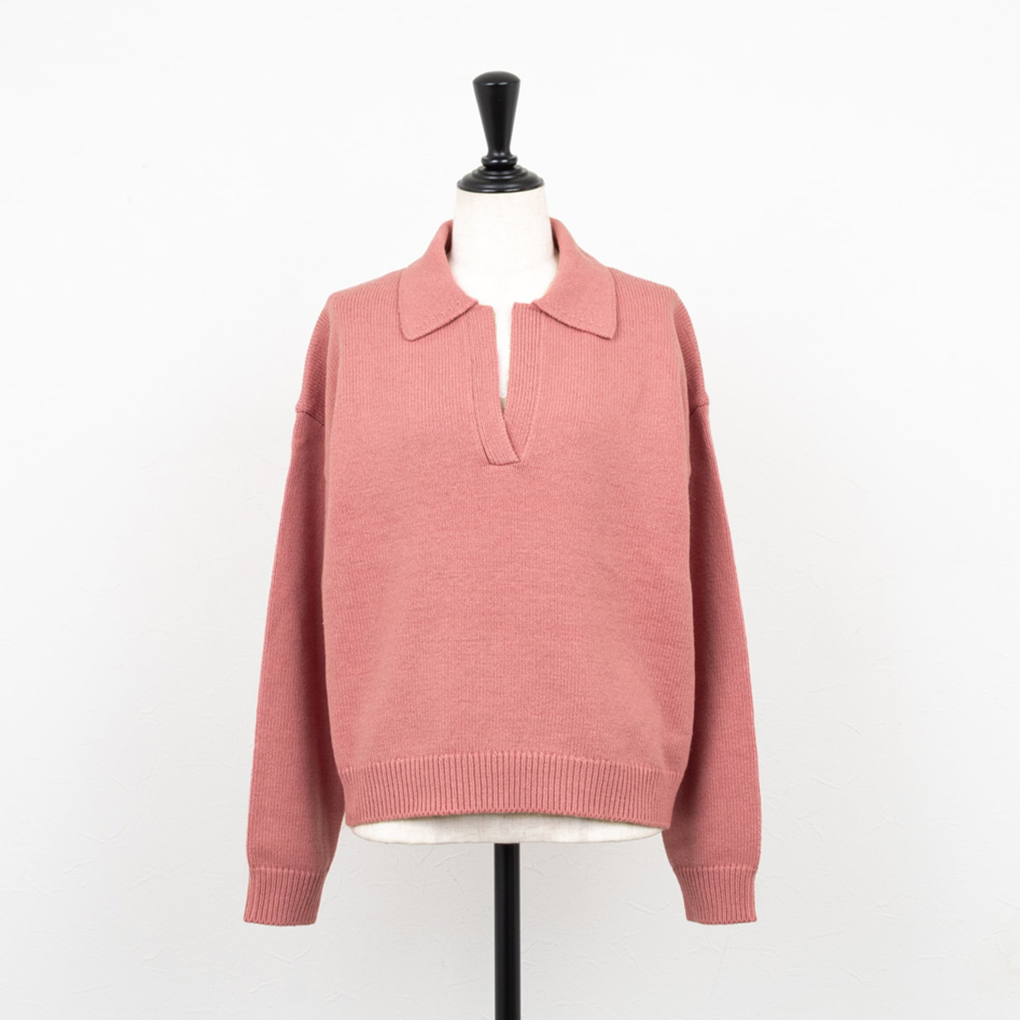 【EMMACULATE/エマキュレイト】スキッパーネックニットプルオーバー(ピンク)